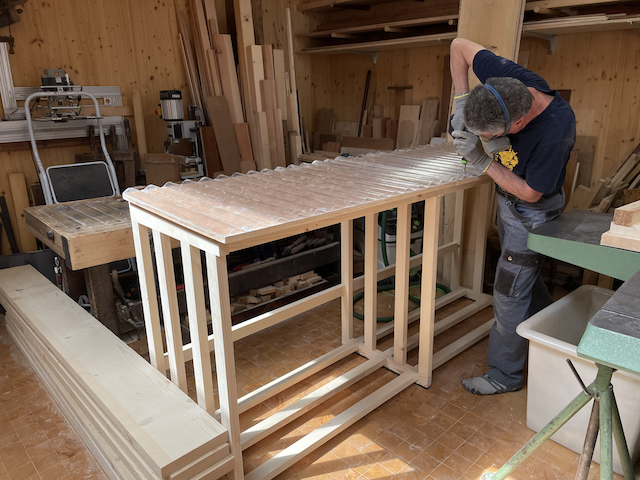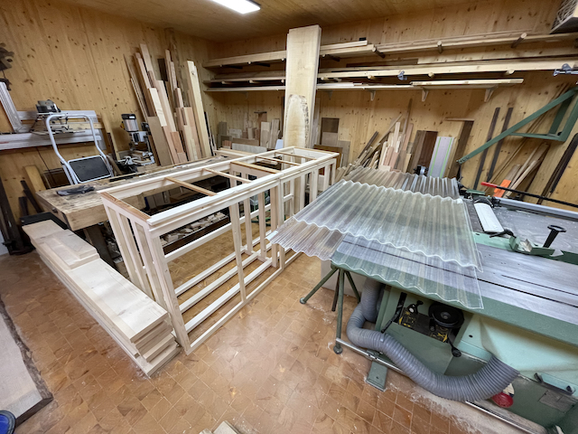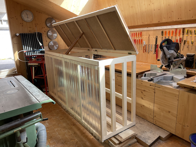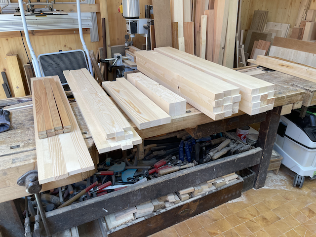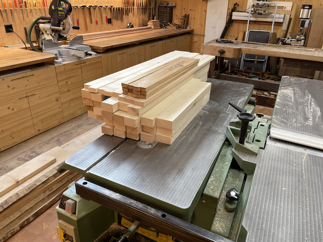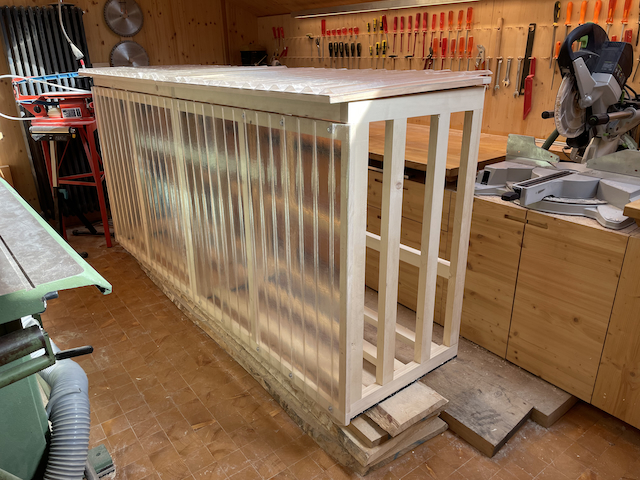 Le 23 juin 2023, je commence la construction d'un abri-bois pour une voisine ! Il me reste du sapin en 40mm d'épaisseur. Dégauchissage et rabotage.