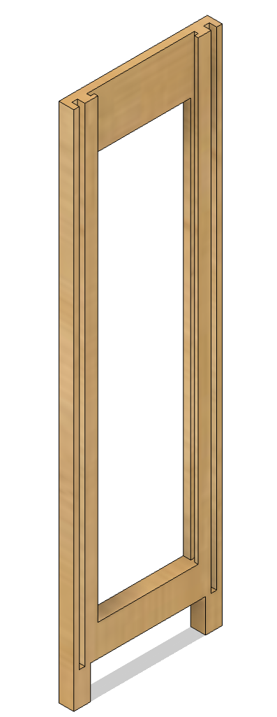 Le 3 septembre 2023, dessins des divers éléments de la base avec assemblage. Il aura fallu passer par bon nombre de modifications avant d'obtenir ces dessins. Voici la traverse arrière avec la rainure pour le plancher.