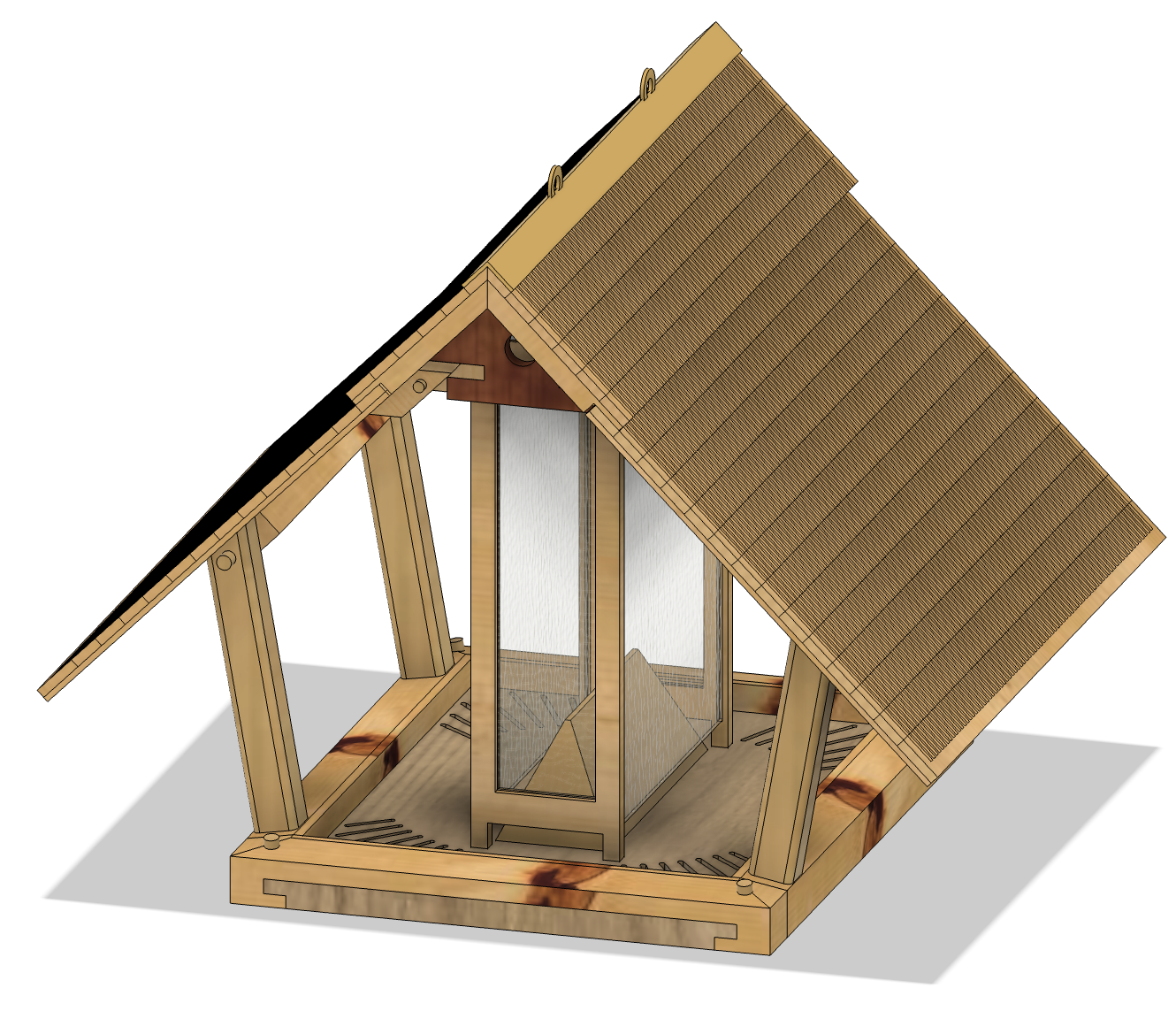 Un drôle de projet. Ce 28 août 2023, l'idée de construire une mangeoire se passe sur un dessin avec Fusion 360. Quelle grandeur, inclinaison du toit, matériaux ?