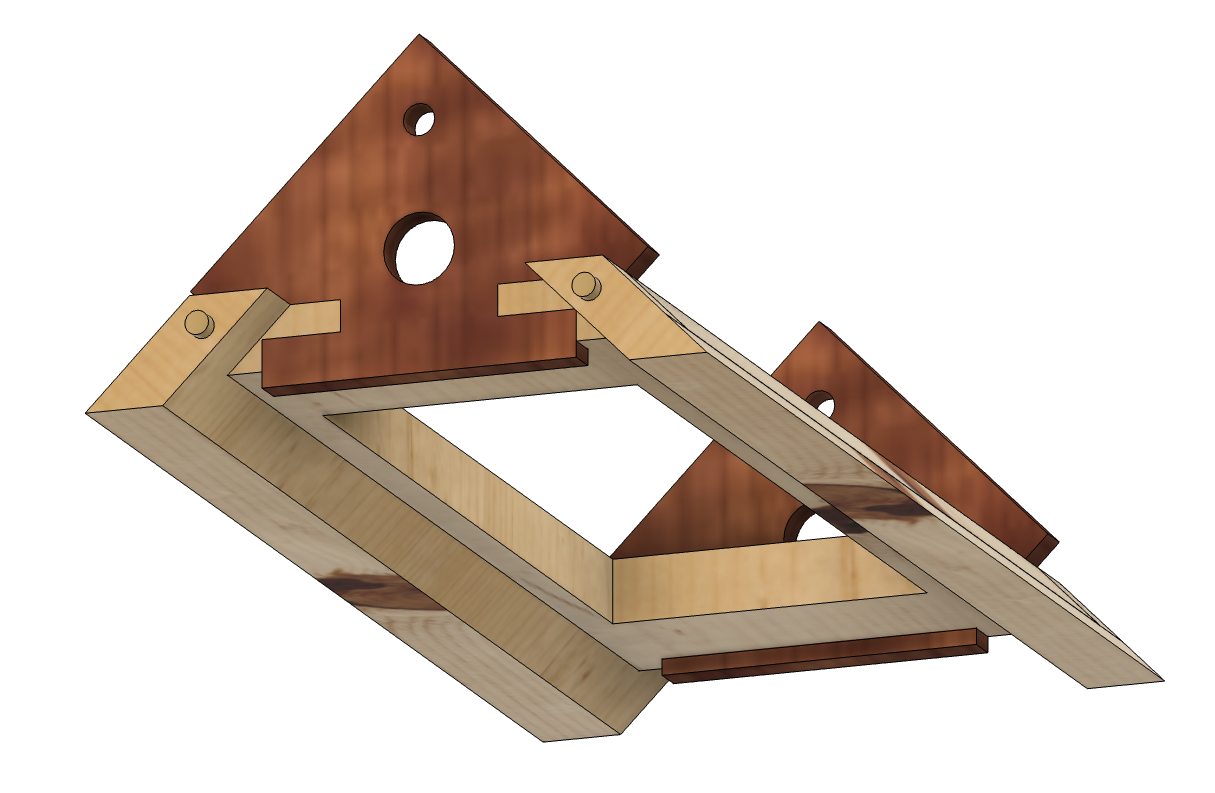 L'ensemble sera évidemment en bois avec une cornière en laiton sur le faîtage.