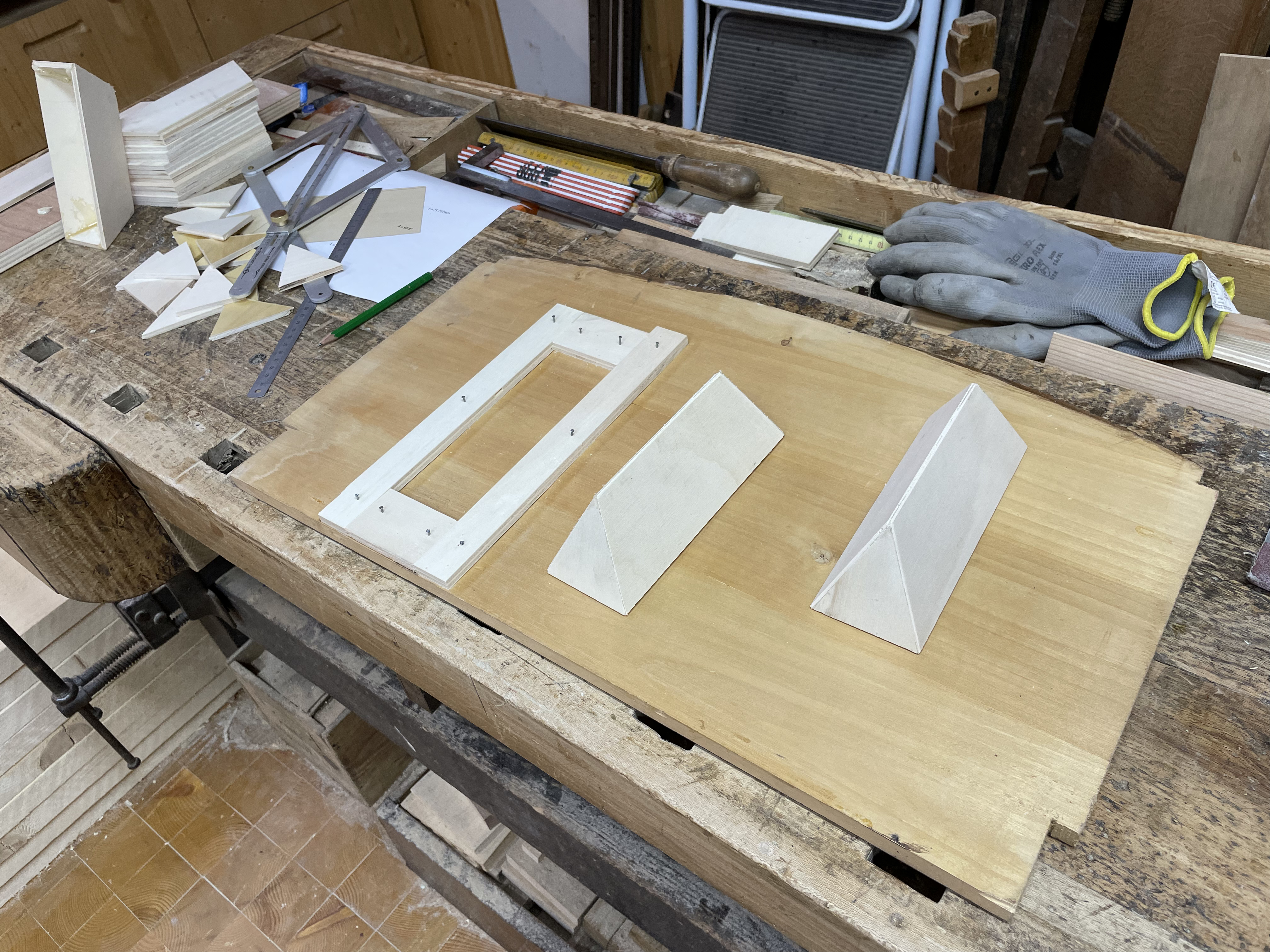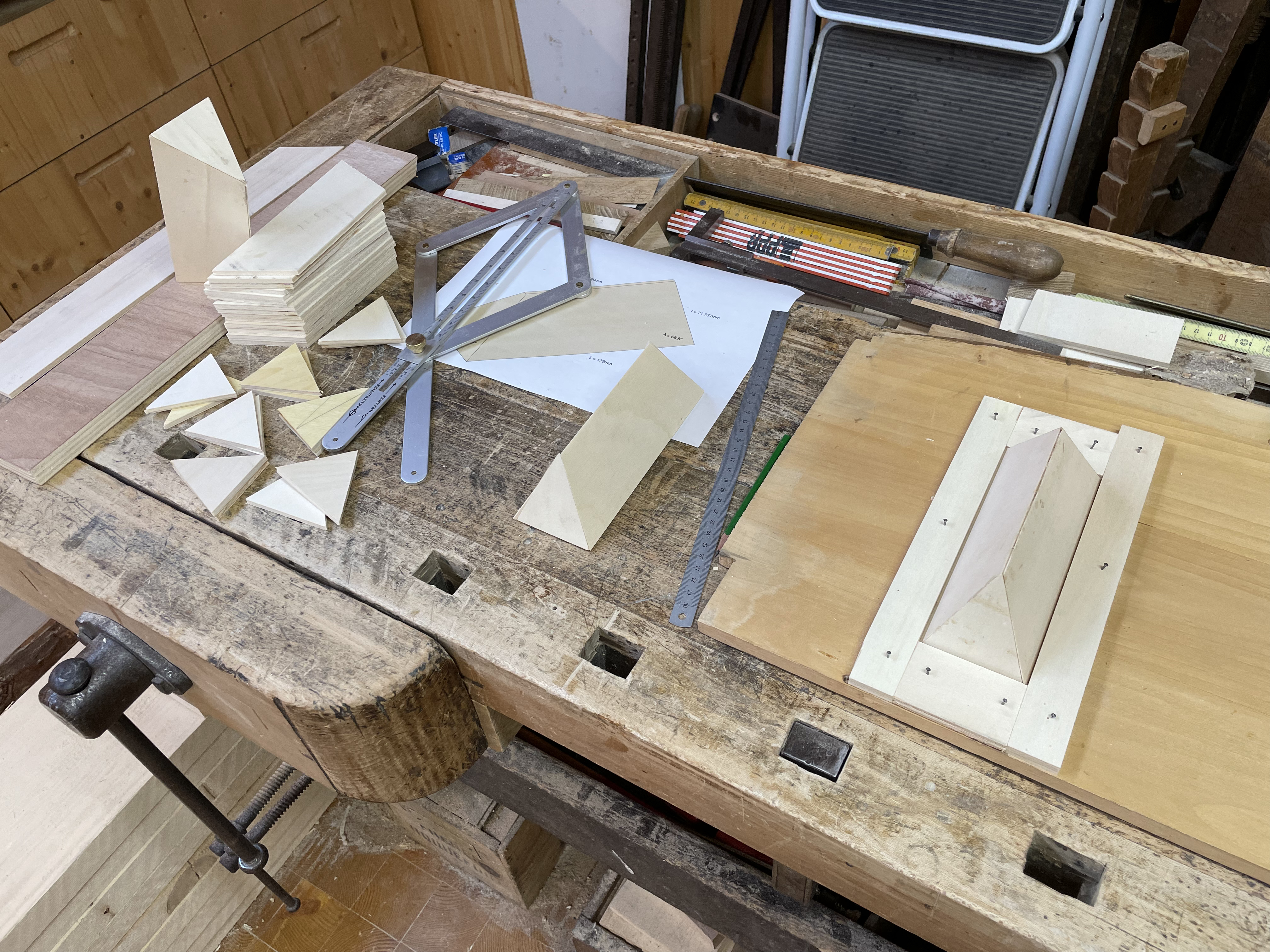 Aujourd'hui le 23 septembre, les pièces côniques sont fabriquées. Ici, découpe des différentes pièces en bois de 5mm.