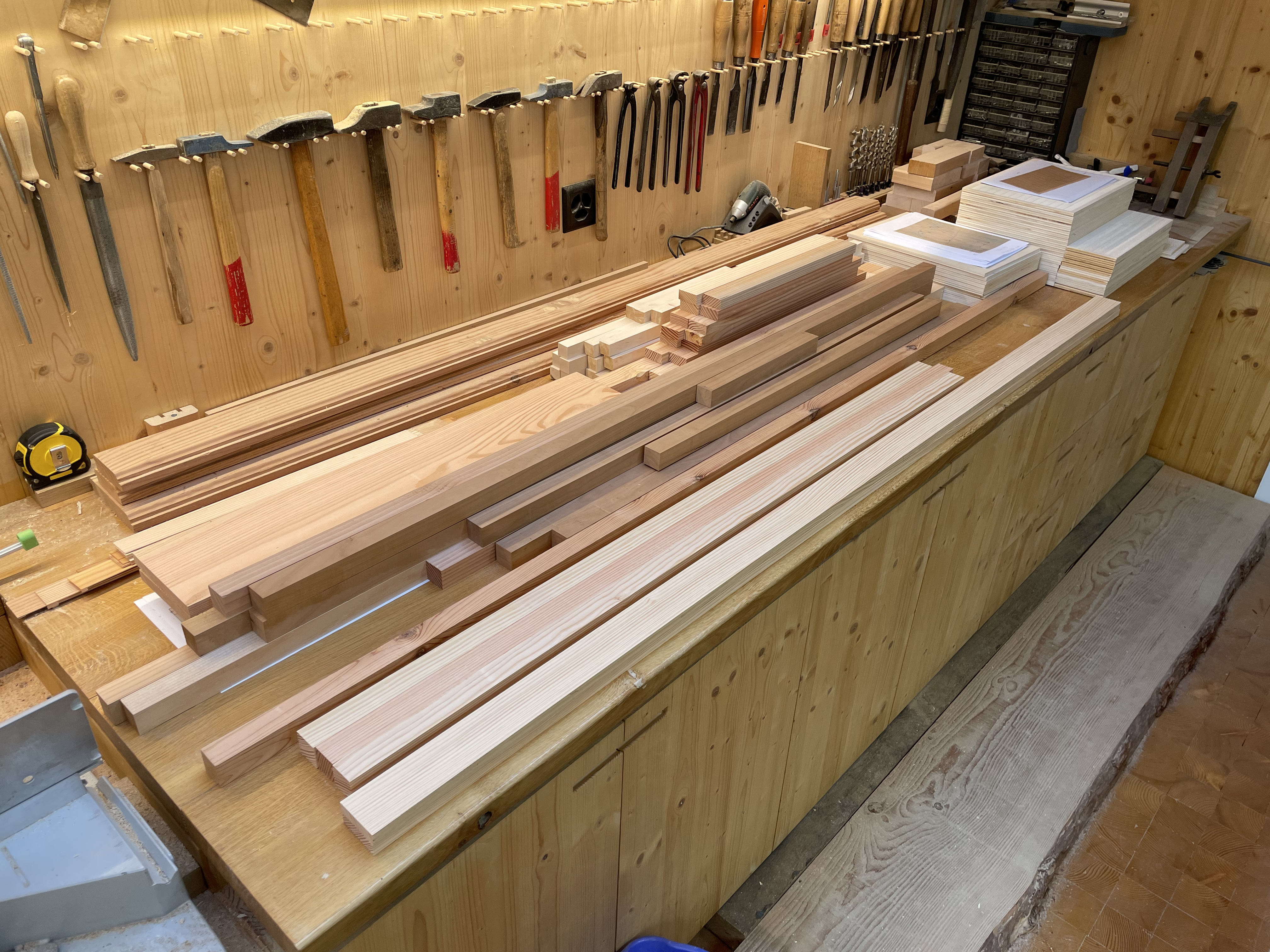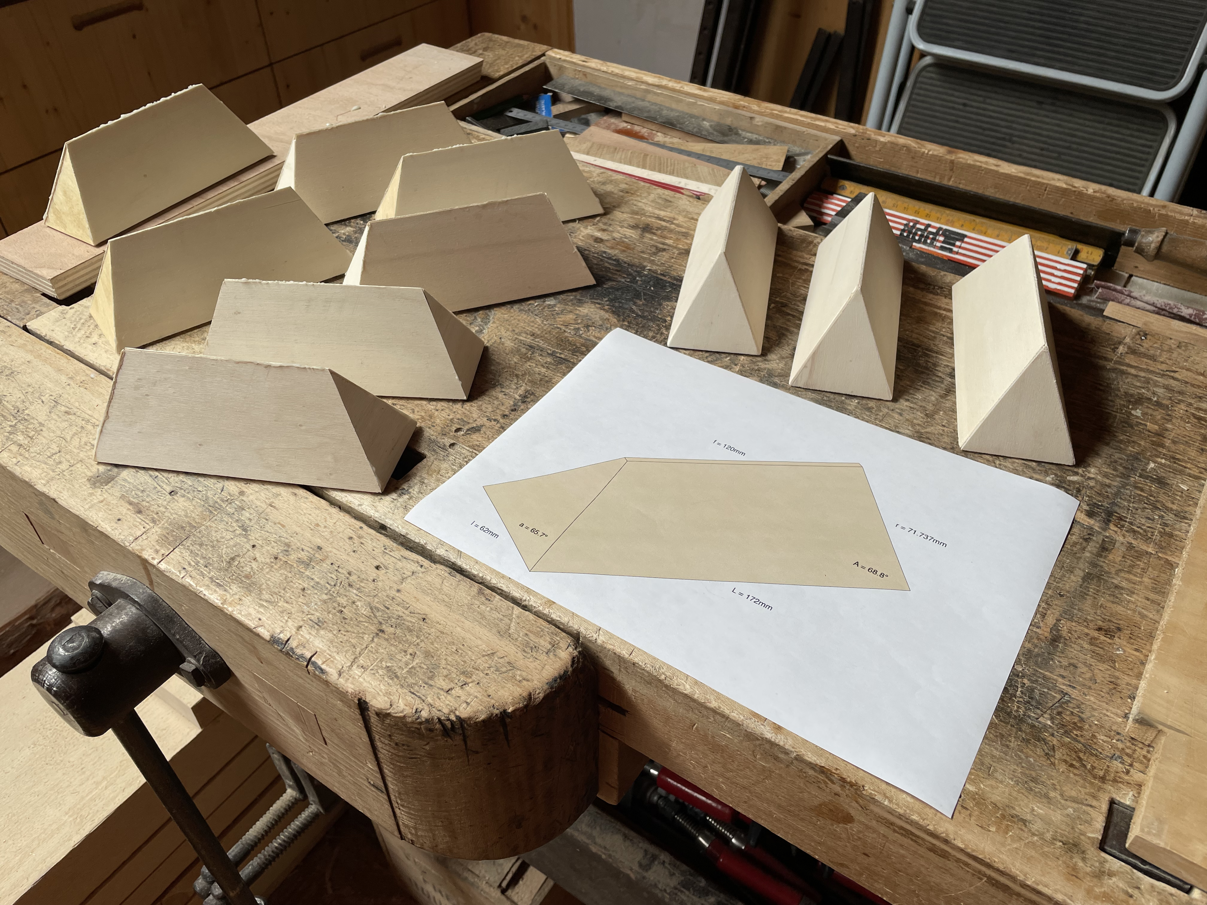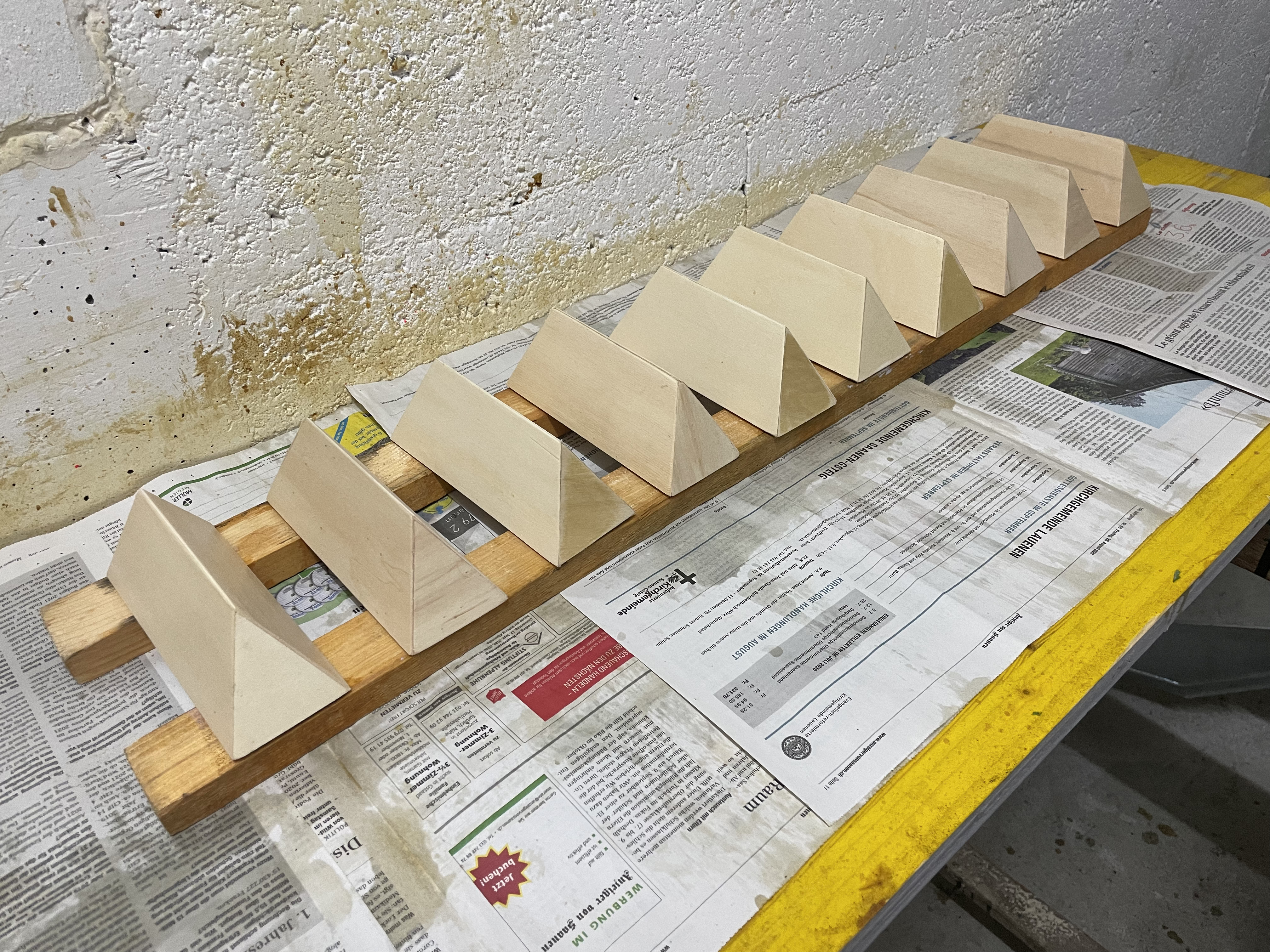 Les dix pièces sont prêtes, encore un peu de ponçage pour la finition.