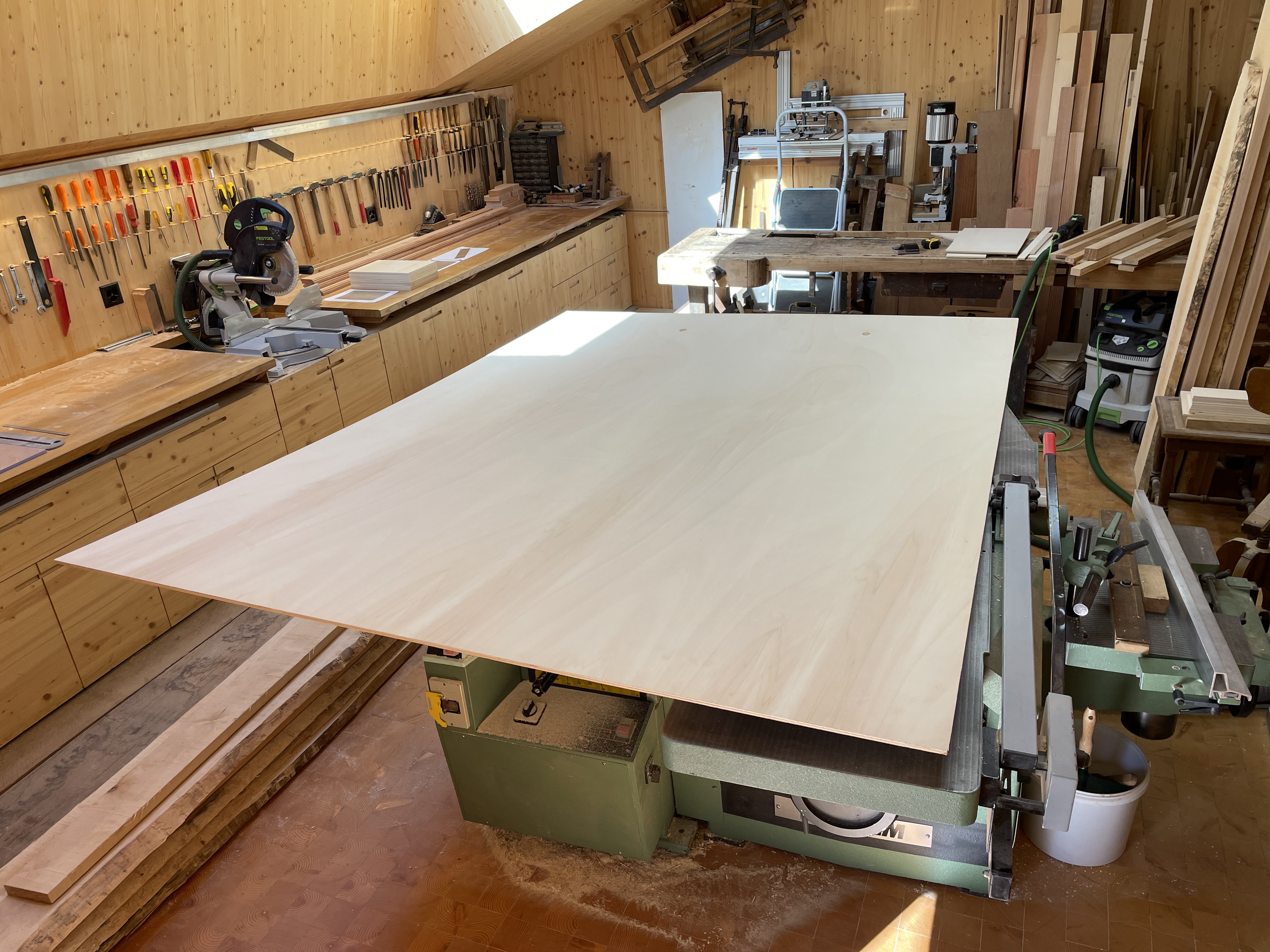 Un panneau de contre-plaqué peuplier mesure 2.52m x 1.85m ce qui est juste acceptable dans mon petit atelier !