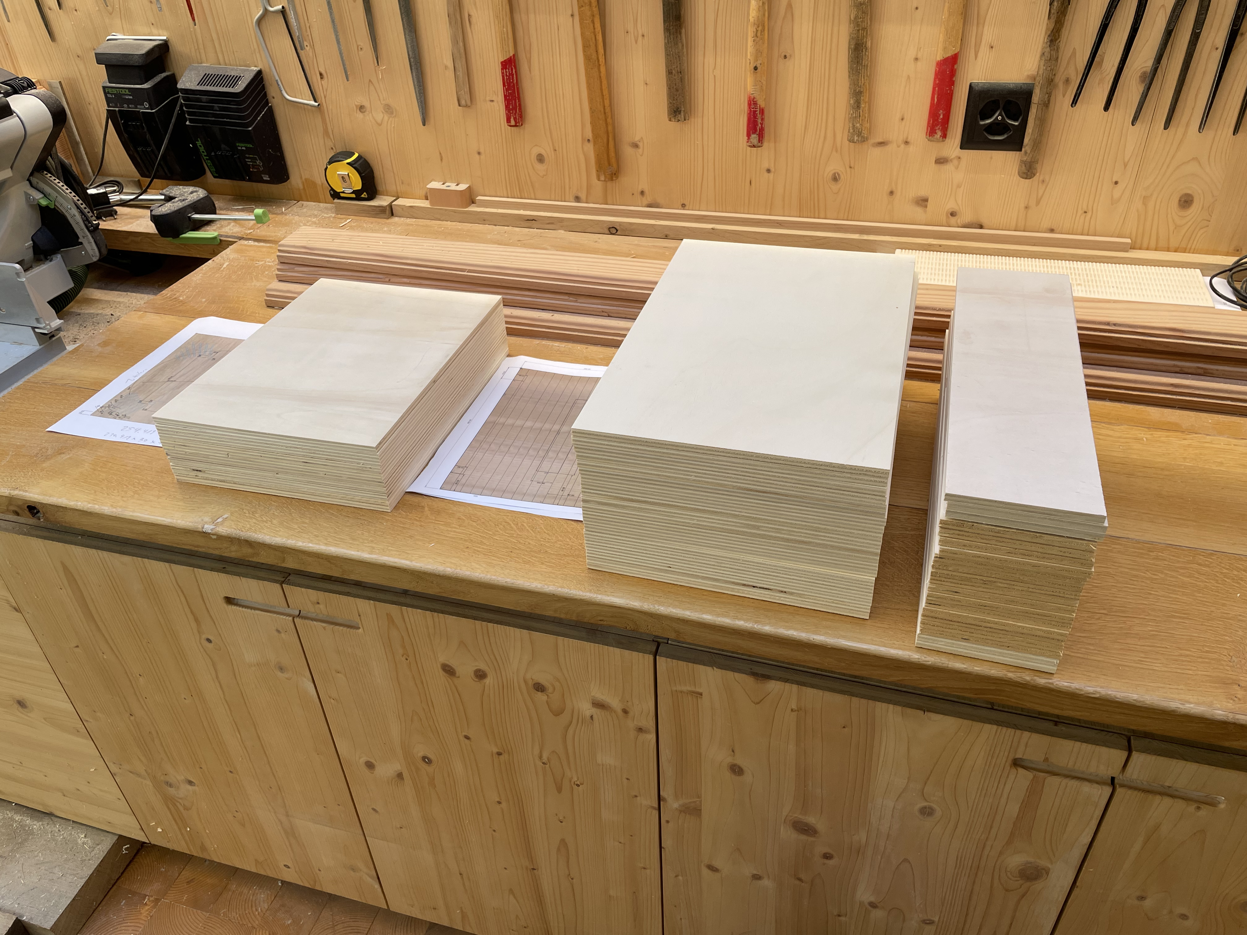 Après découpe du panneau, toutes les bases et toutes les toitures sont prêtes pour le fraisage (mais demain c'est vélo !).
