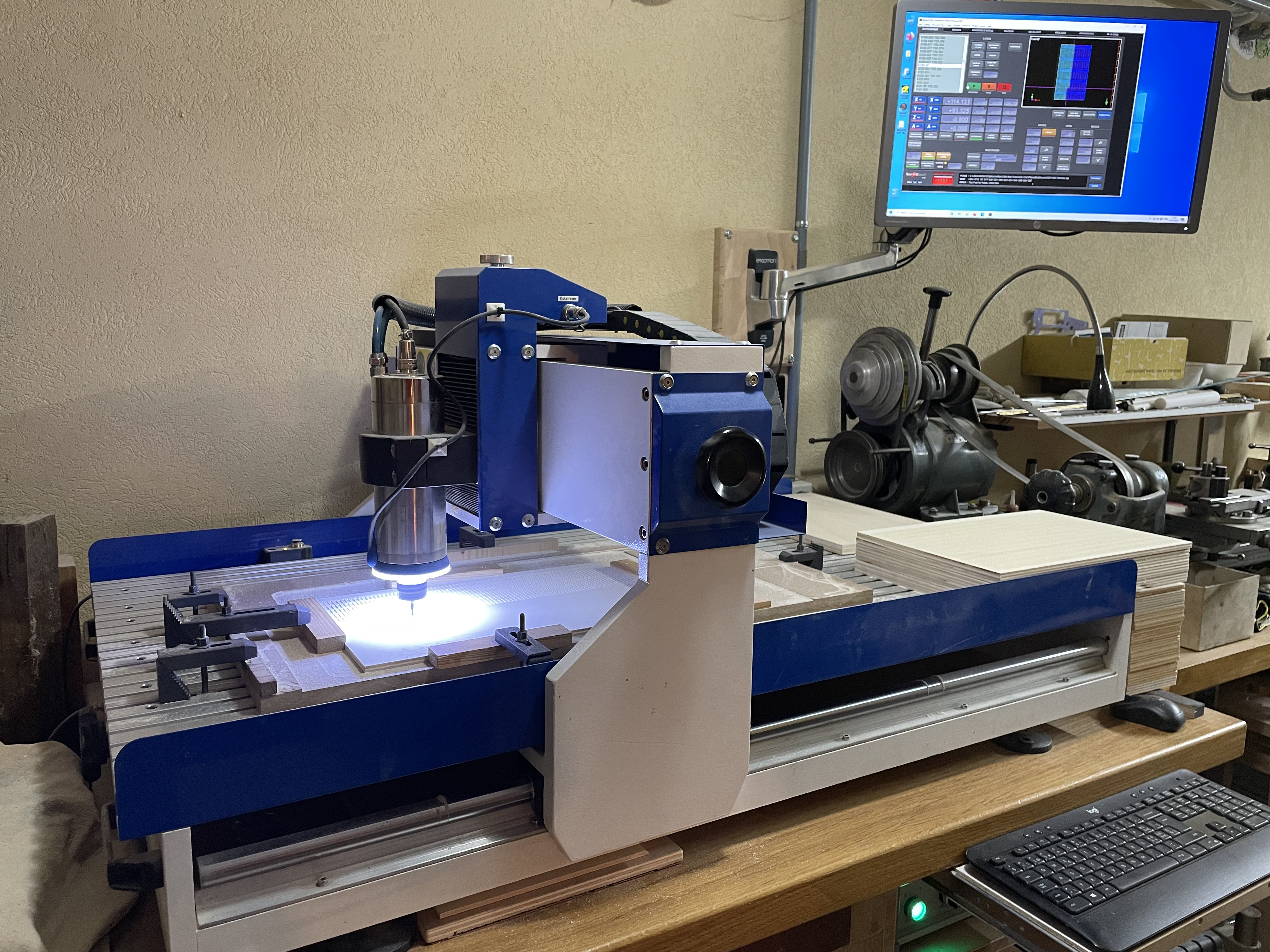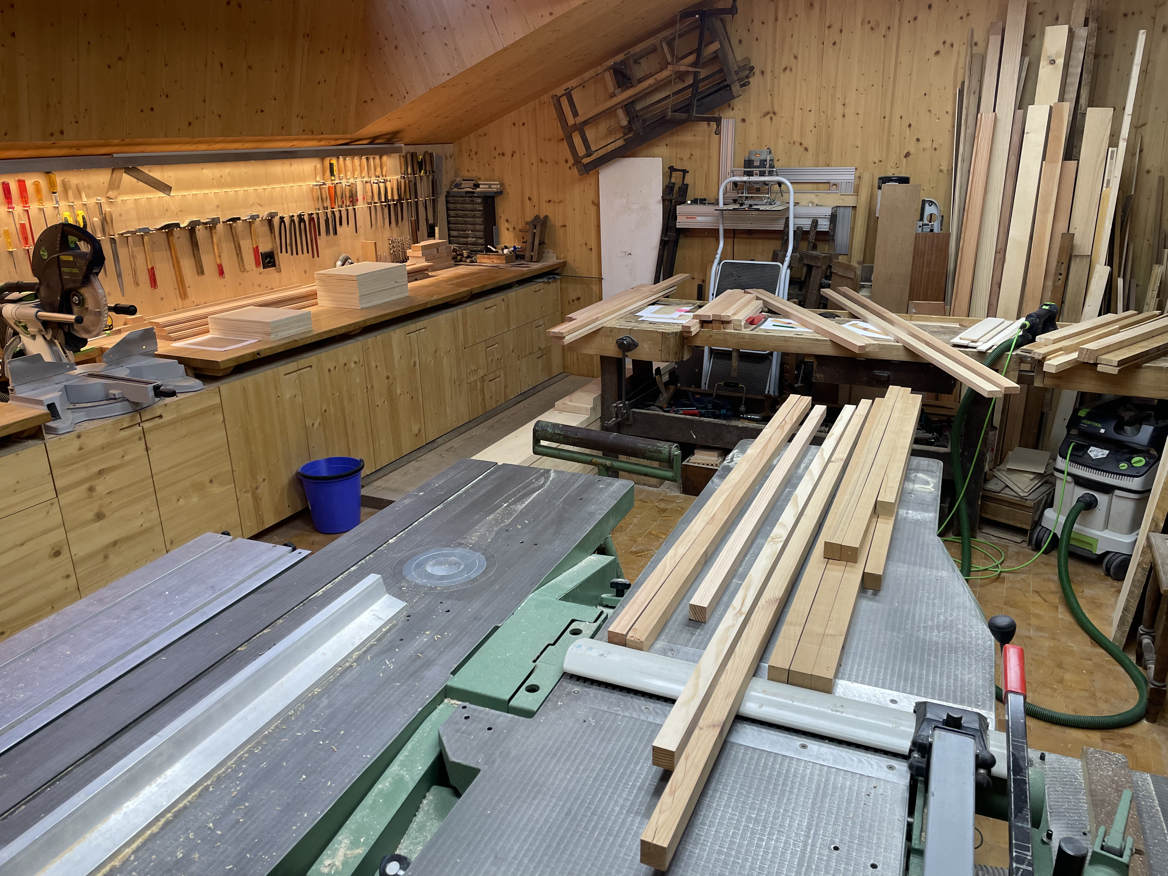 Le 5 octobre 2023, une semaine passée avec visite de musée du ski dans le Jura, d'un réseau de petits trains, de longues sorties à vélo avant l'arrivée du froid et en même temps, du fraisage des structures sur les pans de toits des mangeoires, comme sur cette photo, vu que l'opération se fait toute seule !