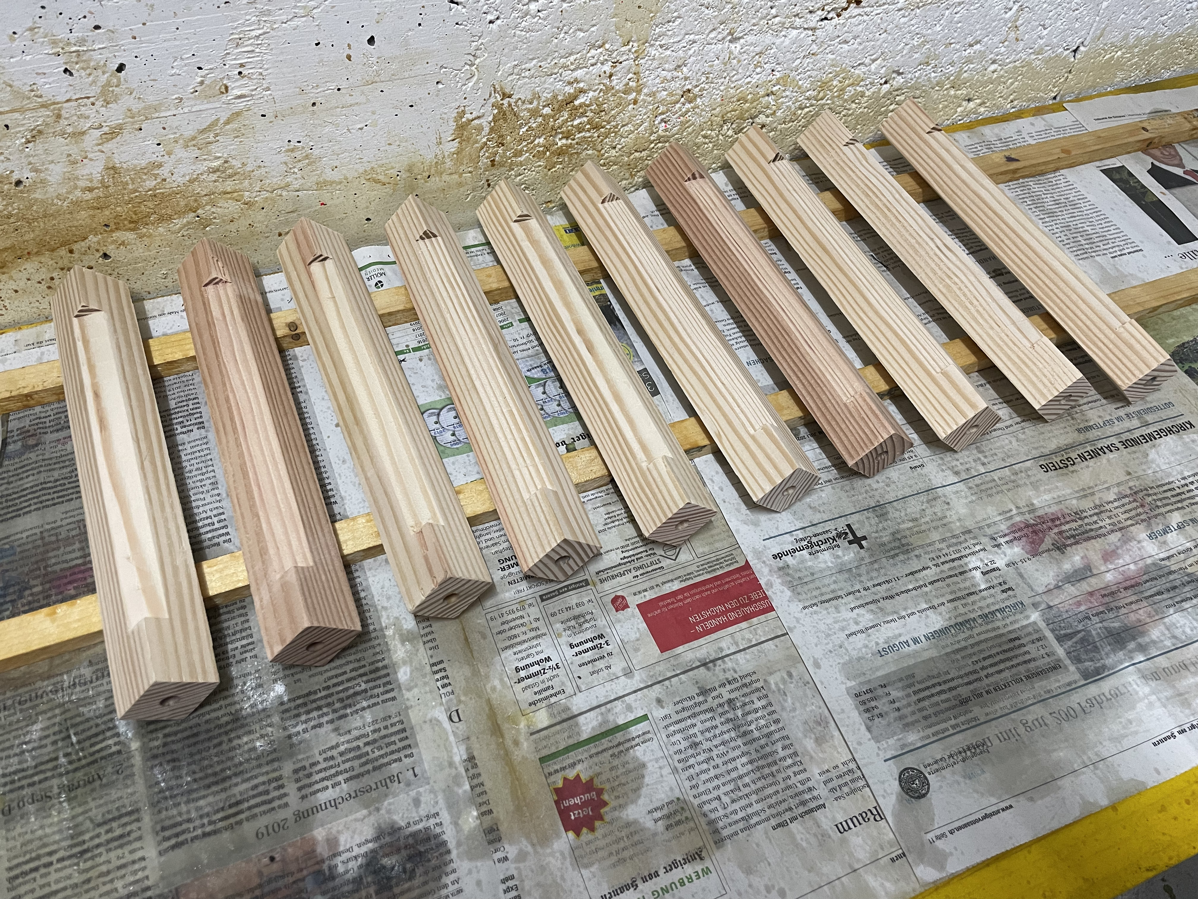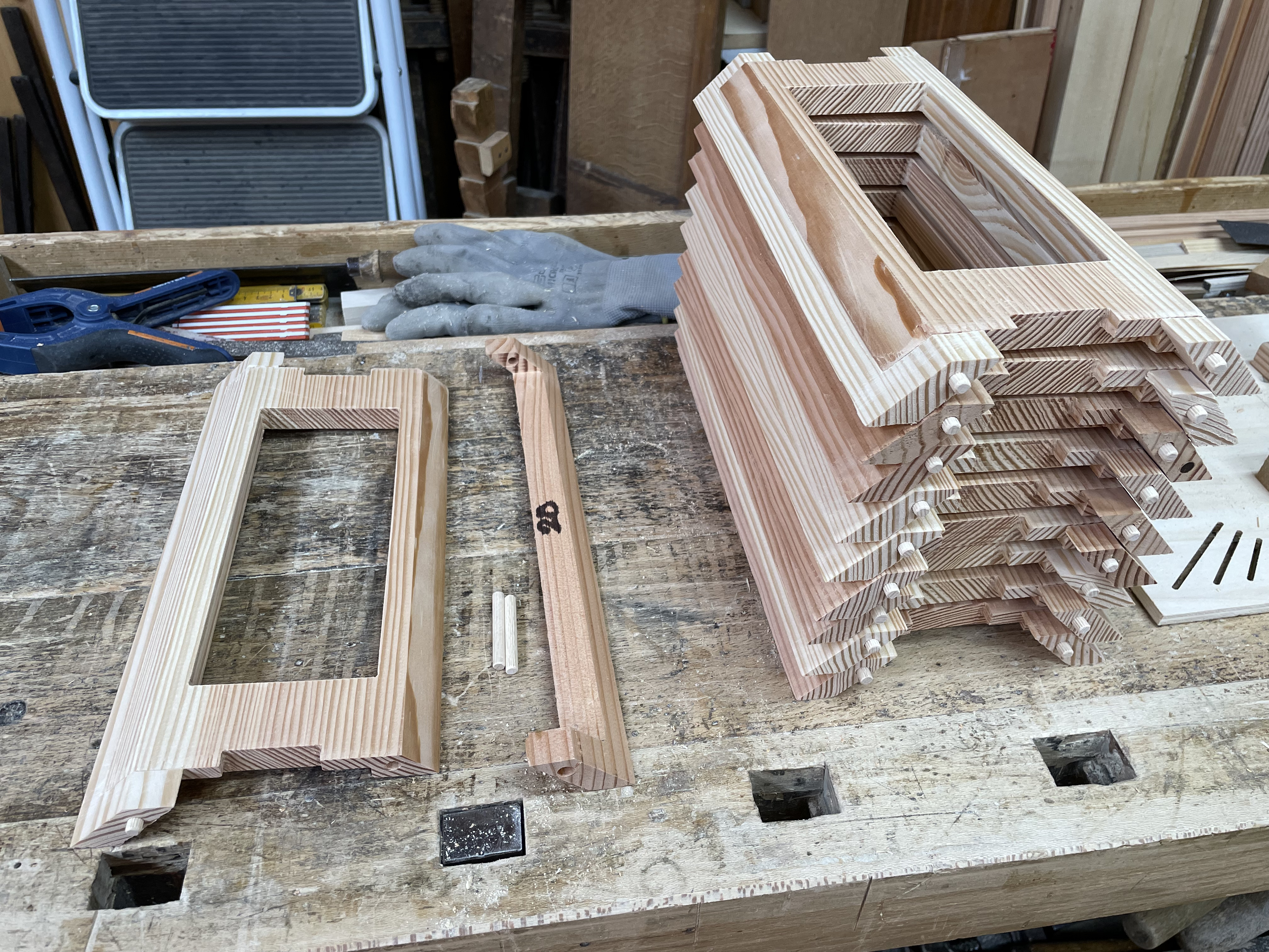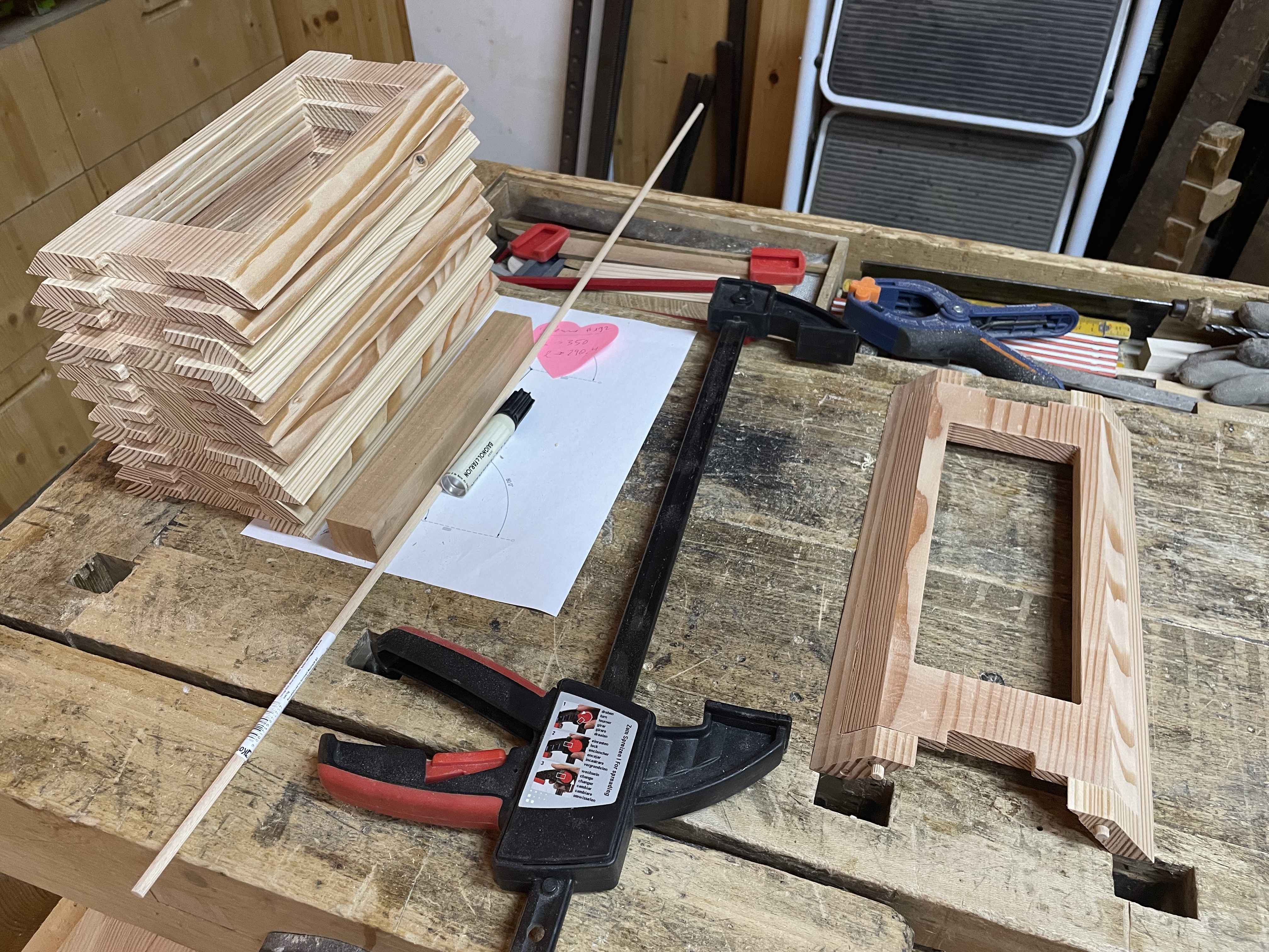 15 minutes par pièce avec ébavurages. Premier montage avec piges sur les supports.