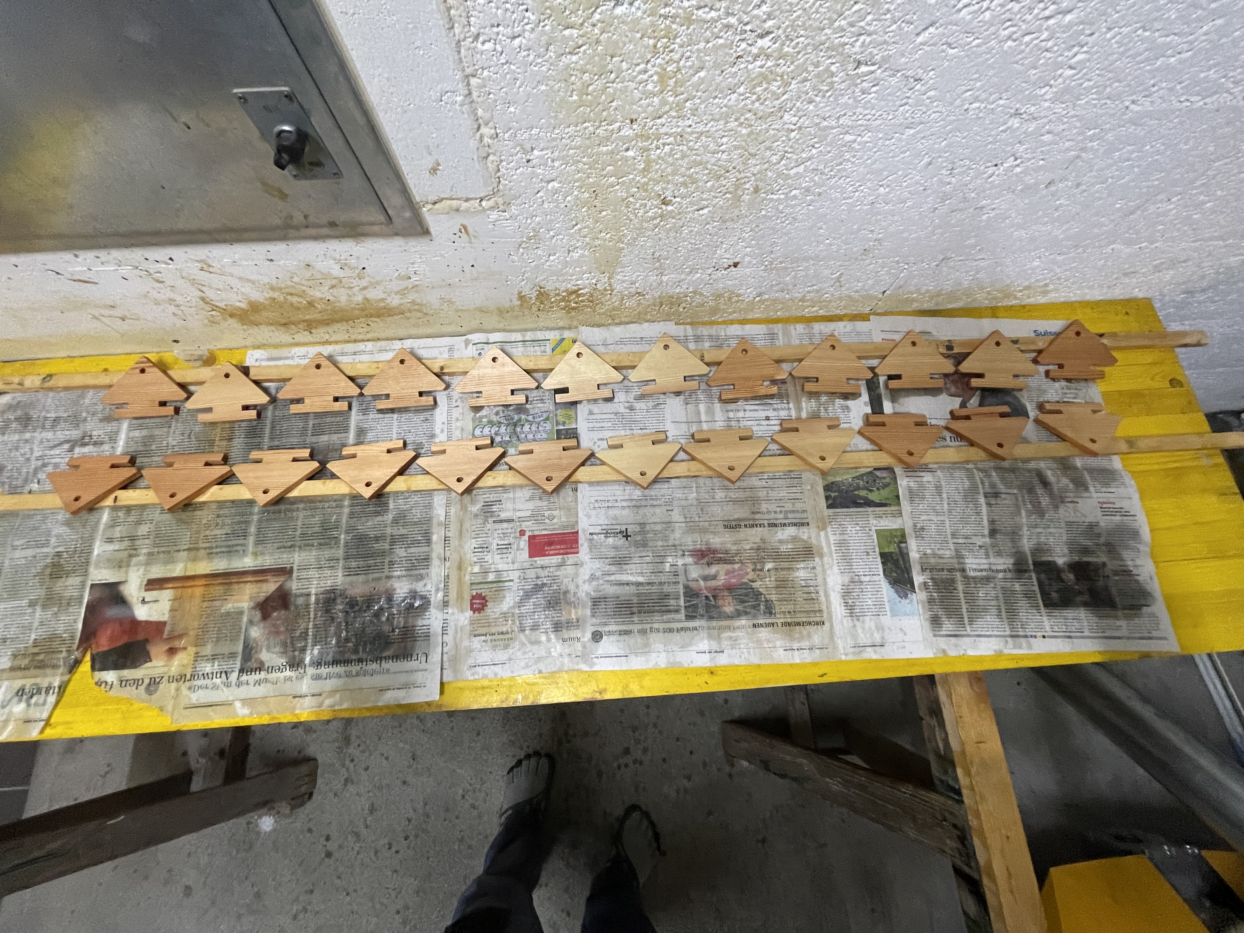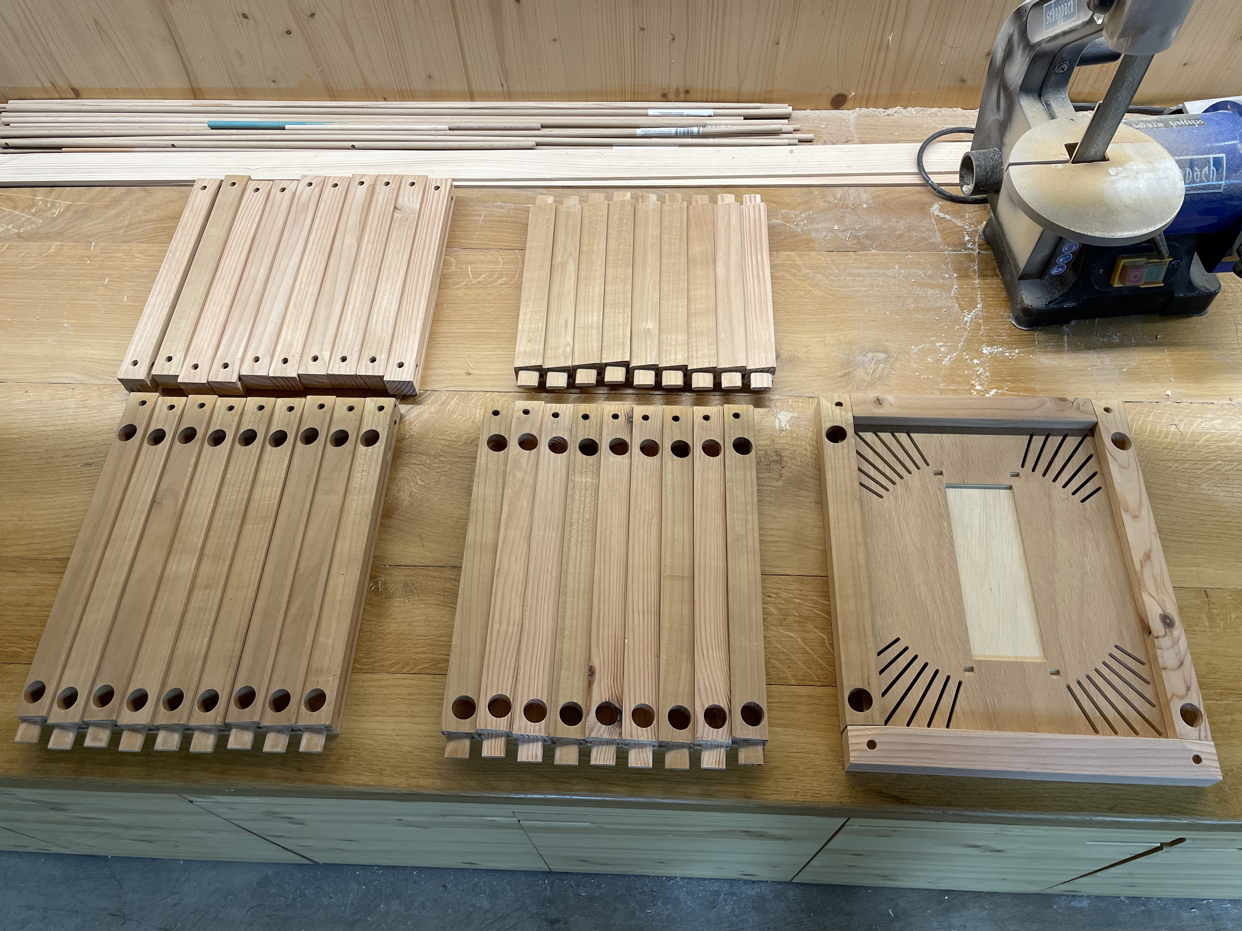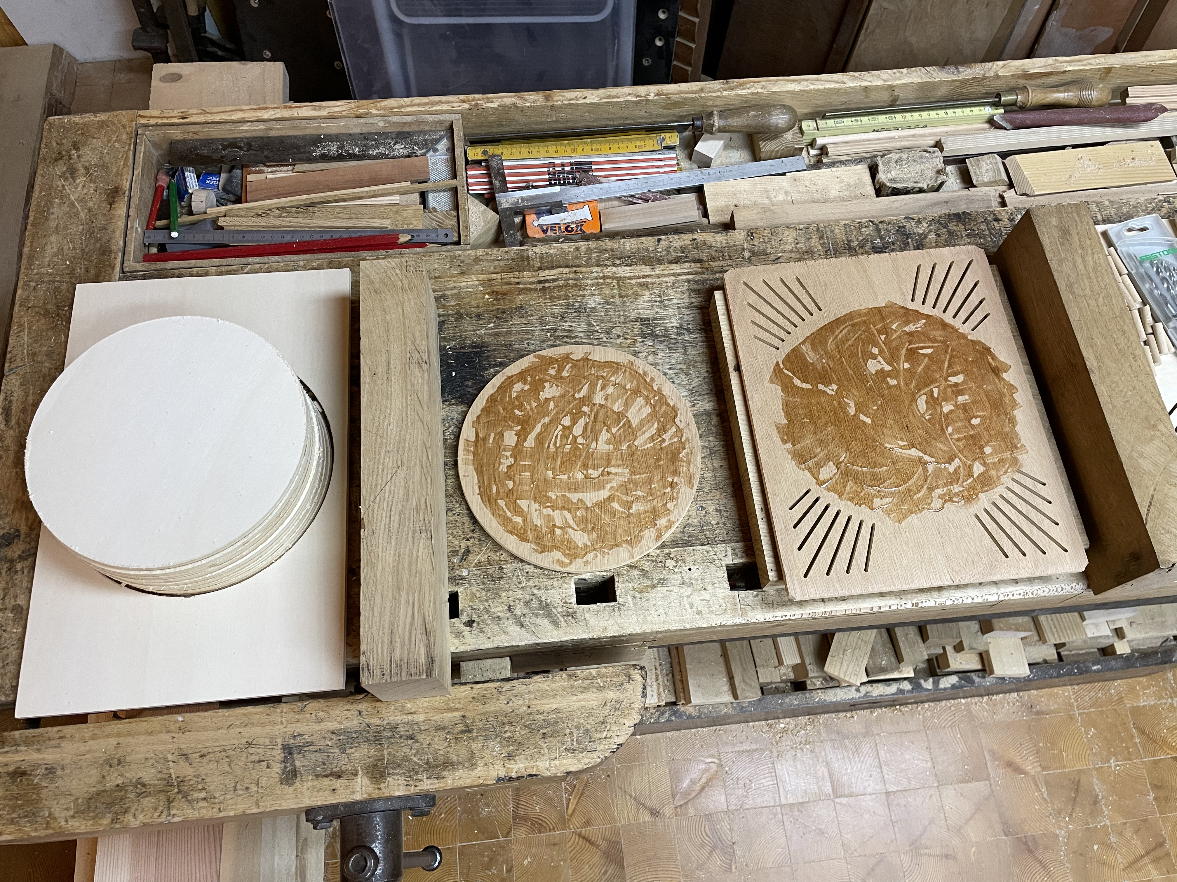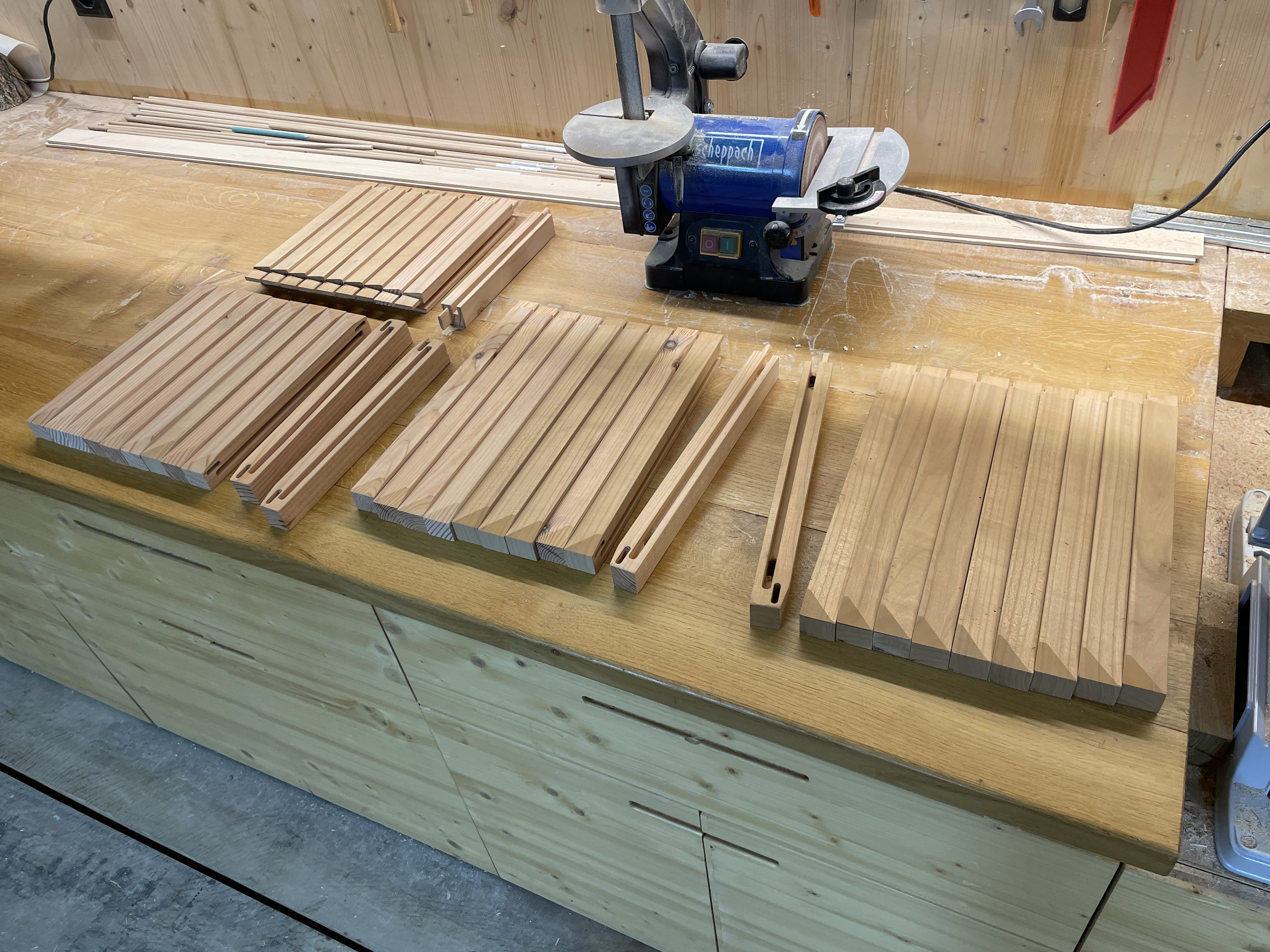 Toutes les planchettes ont été fraisées. 24 pièces doivent être terminées au ponçage puis à l'huile !