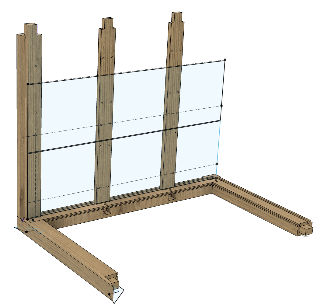 Essai de montage d'une structure, qui donne l'occasion de mesurer les dimensions pour les plaques de contreplaqué pour le fond et le dessus des meubles.