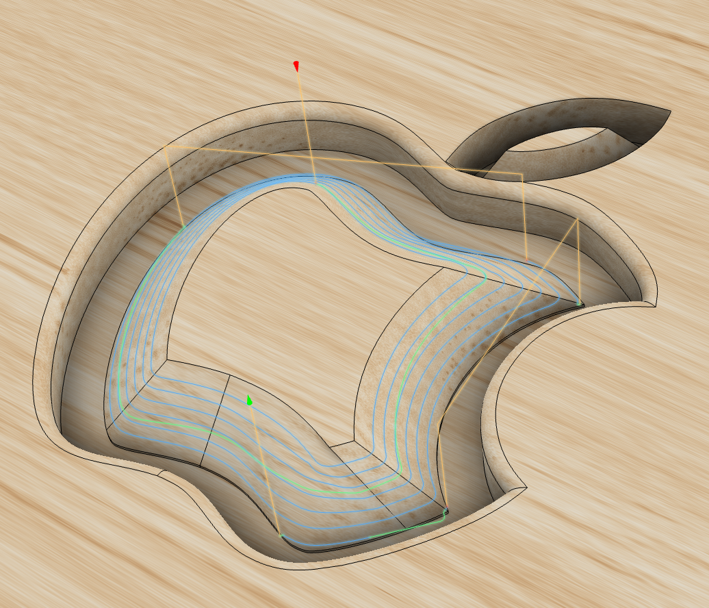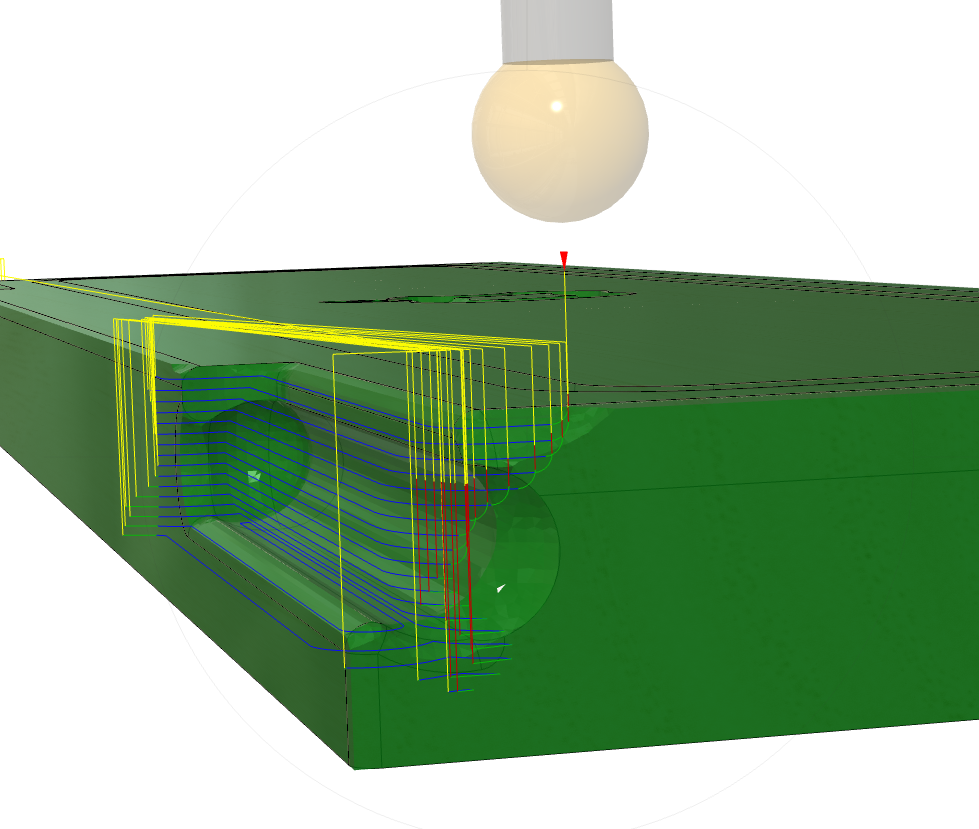 Voici deux simulations de fraisage sur cette face avant. Celle-ci avec une fraise sphérique pour les prises de main.