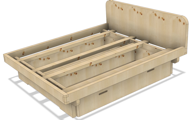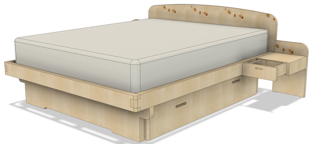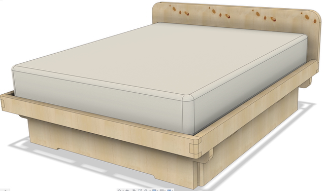 Le 13 mai 2025, une visite dans un show room = une inspiration pour un lit en bois massif. Deux jours de dessin et une première ébauche donne un lit de taille 160 cm x 200 cm avec deux grands tiroirs dessous.