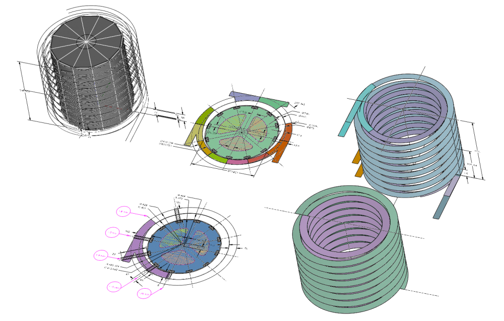 Un bon mois de dessins pour une hélicoïde un peu particulière. Le projet est un diamètre extérieur de 1 m et une hauteur d'environ 82 cm, ce qui veut dire une construction en deux éléments pour pouvoir passer par une porte normale.