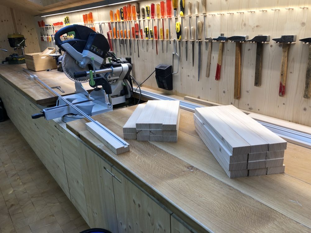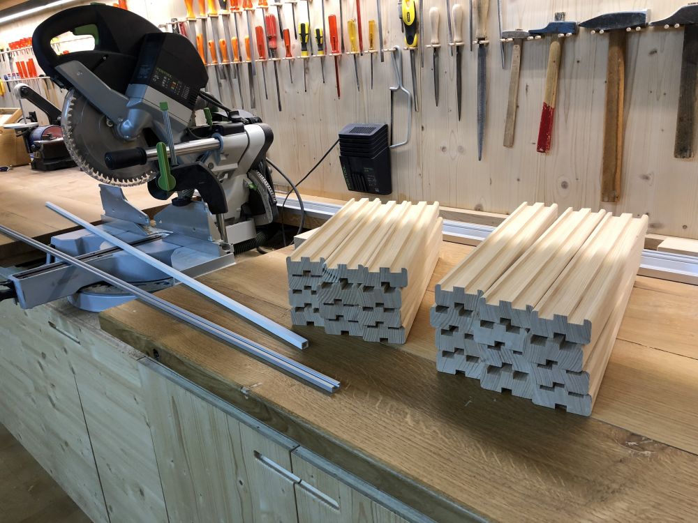 Début des travaux pratiques le 15 février. Préparation du bois pour les colonnes support.