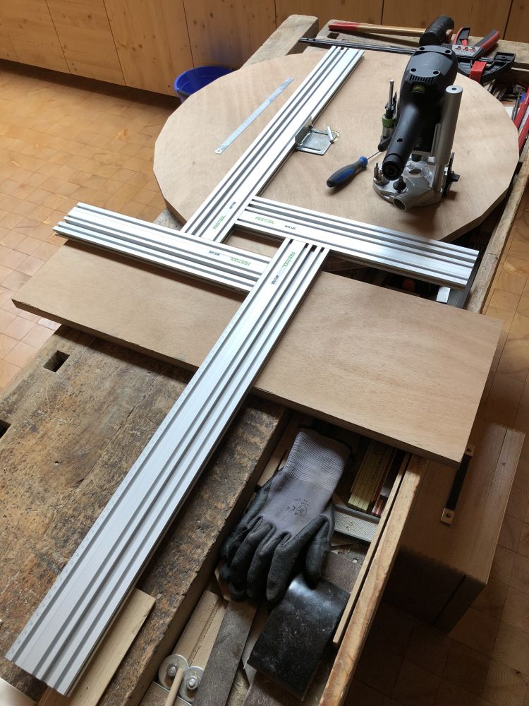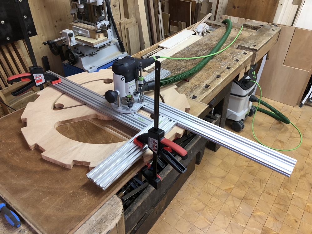 Fraisage des logements pour les colonnes. Le gabarit Festool permet un travail particulièrement facile.