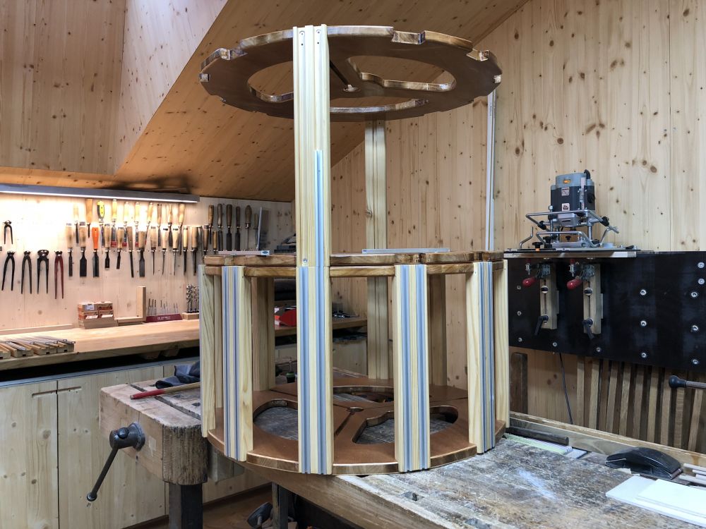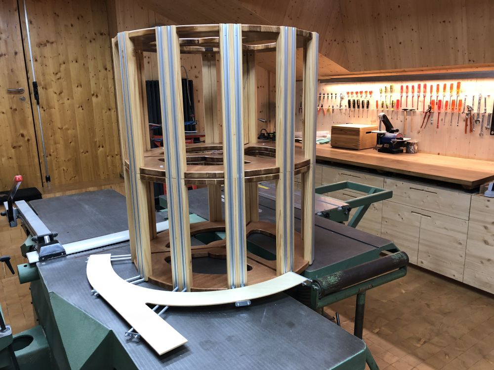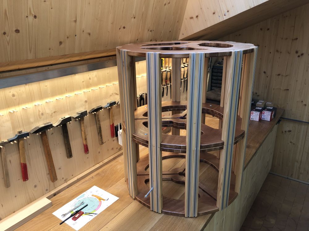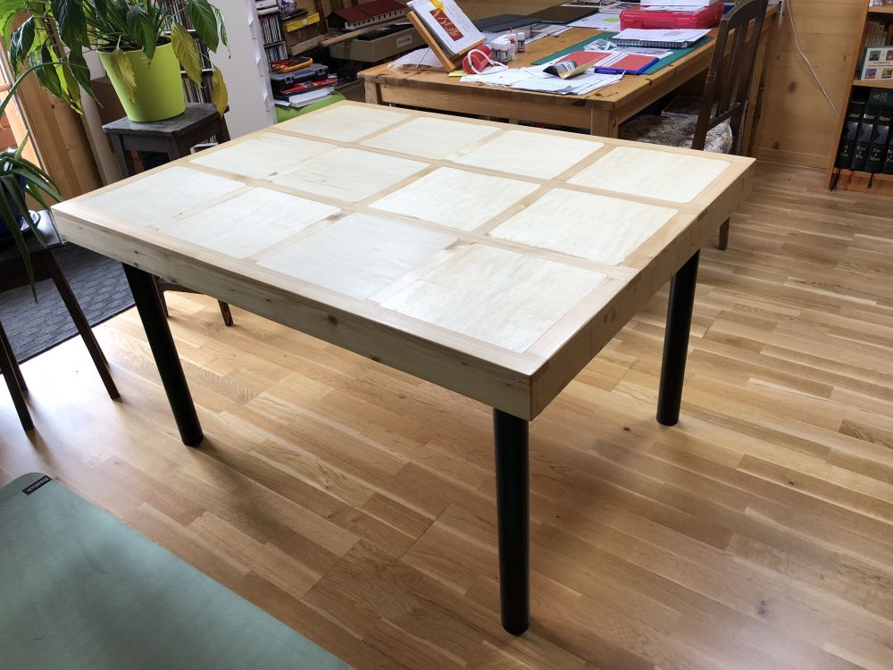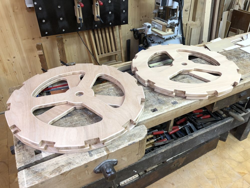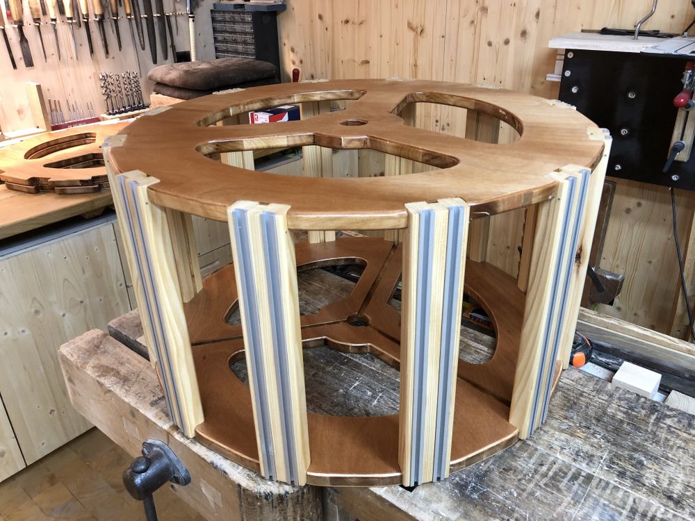 Pour mettre l'hélicoïde en place, il faut une table de 1 m de large et environ 1,30 m de long. Dessin puis construction. La méthode utilisée est justifiée par la disposition de bois, de contreplaqué et pour obtenir une table relativement légère. Plus en détails sur l'article du blog.