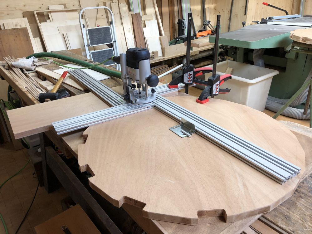 Fraisages circulaires avec le même gabarit, sur une plaque martyr.