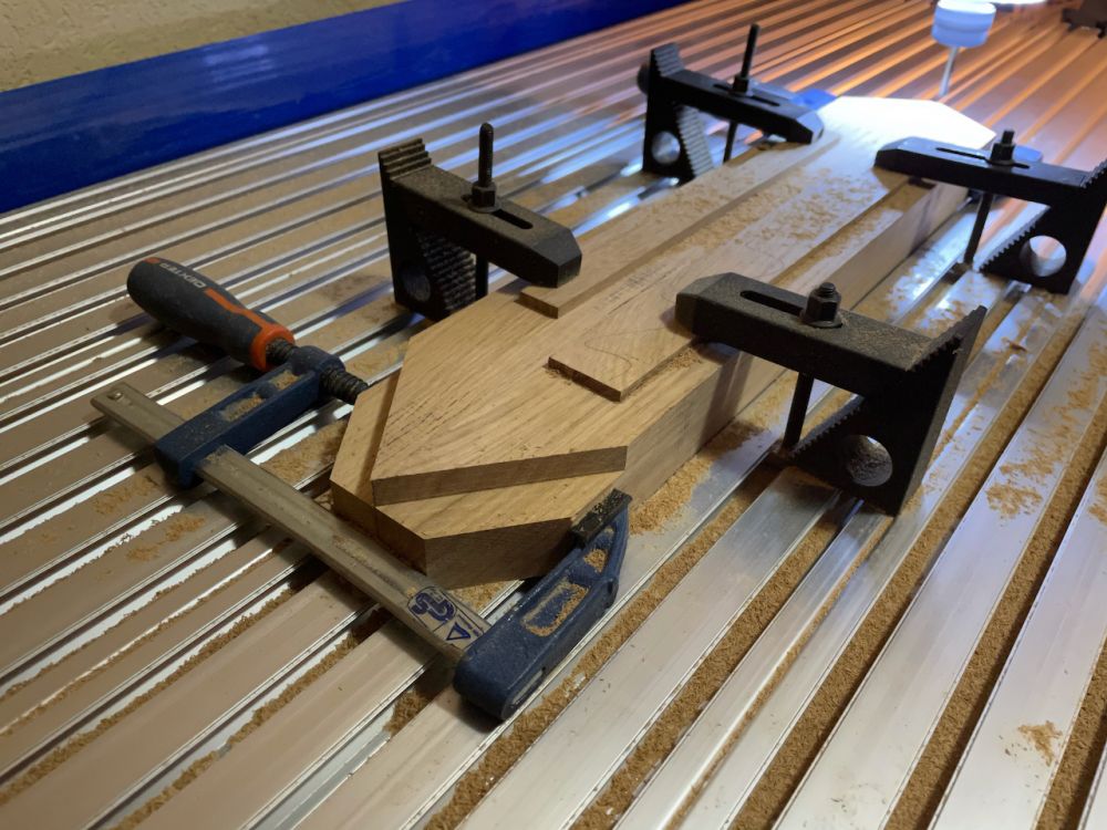 Une autre blague moins visible, l'échauffement de la butée fixe lors du fraisage a agrandi les passages dans les angles du au ralentissement de l'avance. Il faut adapter certaines plaques de contreplaqué.
