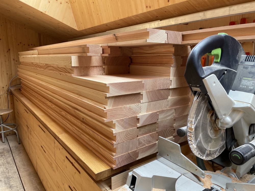 Le 14 septembre, toutes les pièces ont été rainurées et les languettes sont taillées.