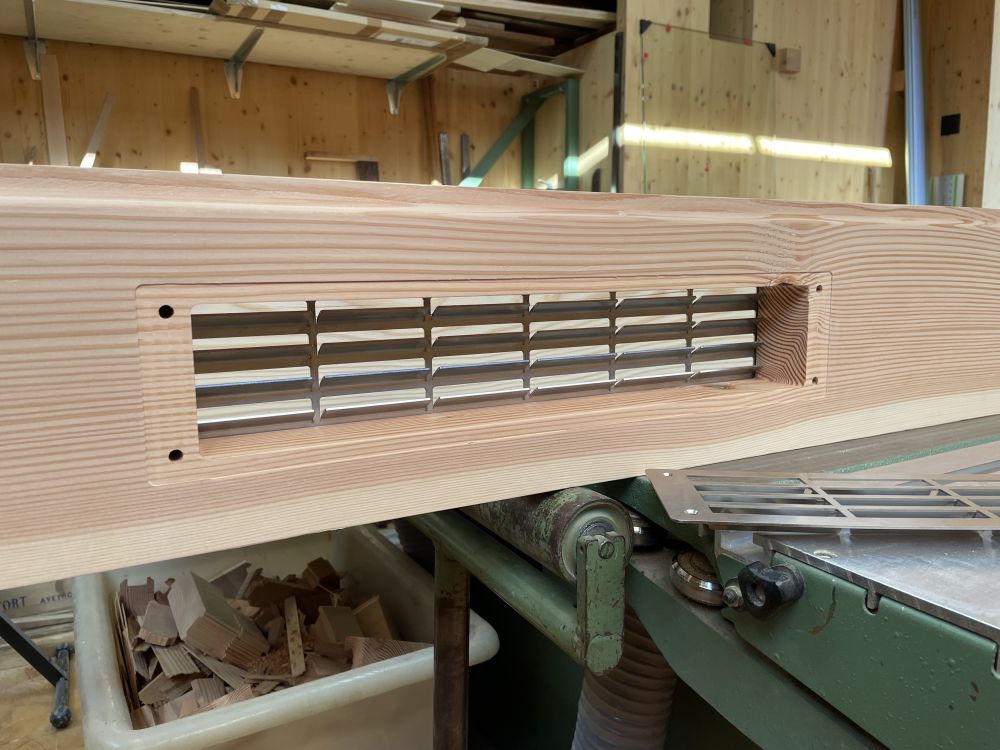 Le 23 octobre. Les aérations restent à façonner. Une phase dessin puis découpes à la scie sauteuse avant fraisage sur la CNC.