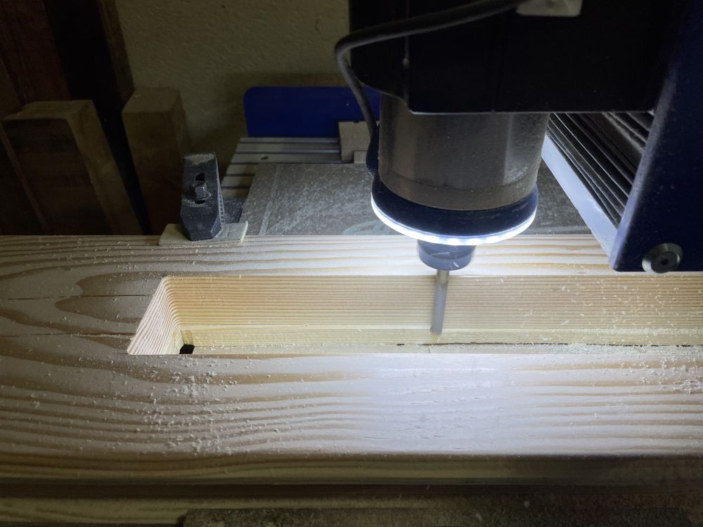 Le 26 octobre, dernier trou à fraiser. Il est plus large d'ou un temps de travail de 2h5mn à la CNC. Une chance de plus avec une longueur de fraisage de 920 mm donc légèrement inférieure à la capacité de la machine.
