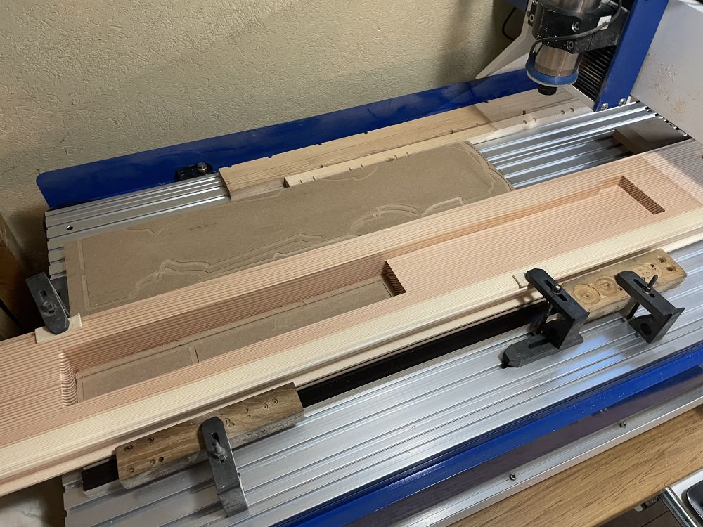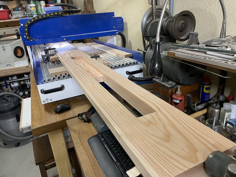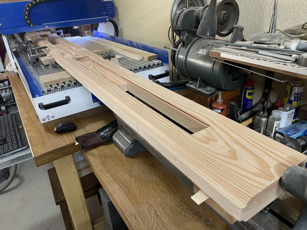 Le 25 octobre, tracés sur le bois, découpes à la scie sauteuse et passage sur la CNC. Il ya une surépaisseur de 2.5 mm autour du trou que la fraise doit enlever.