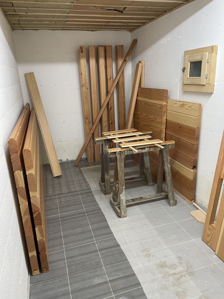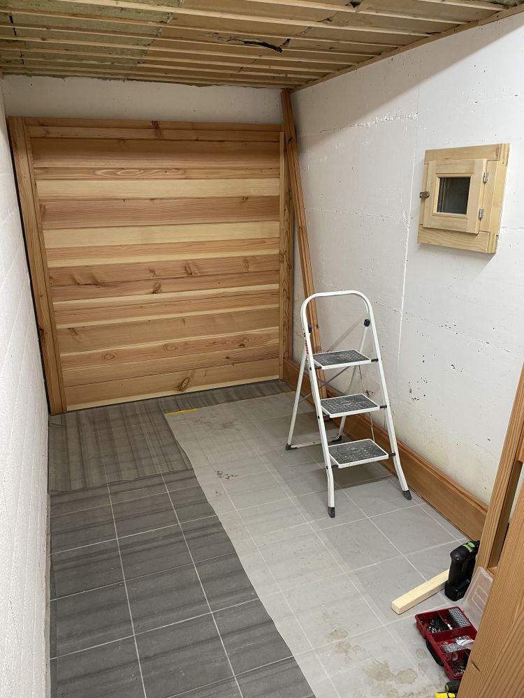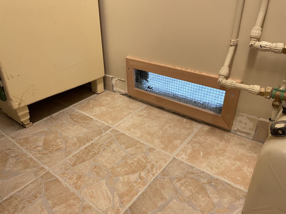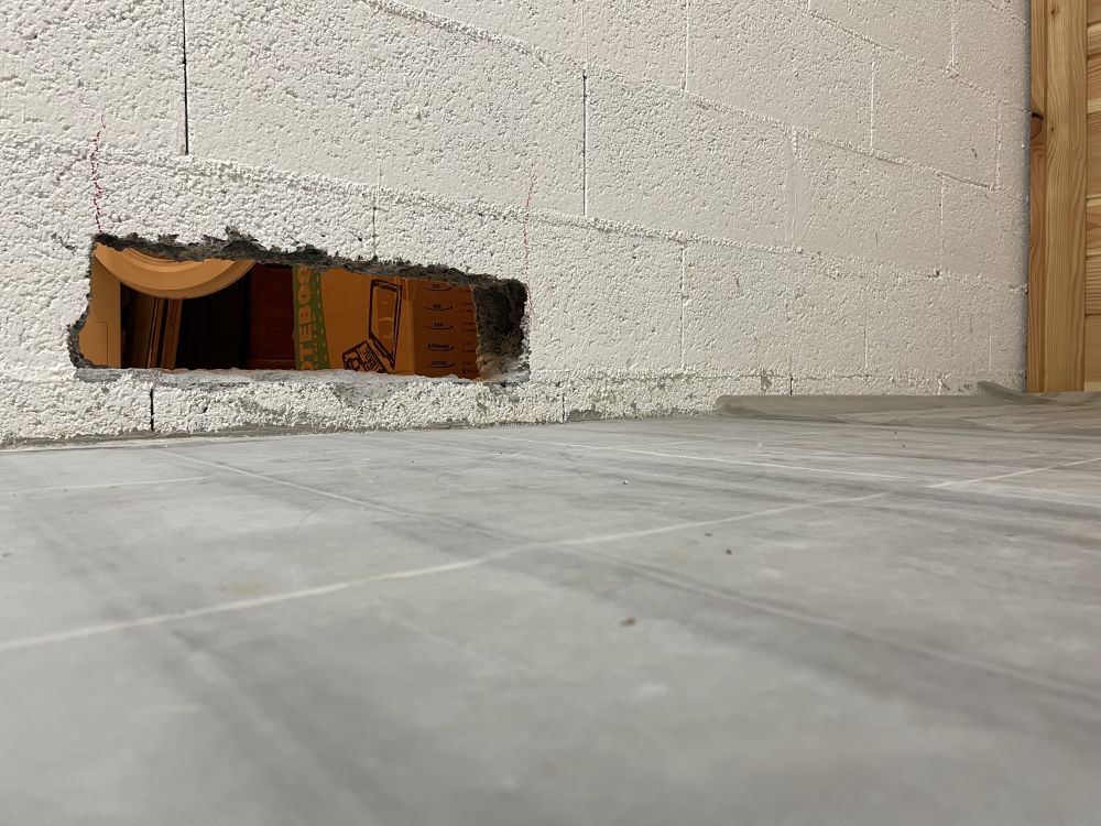 Le 23 novembre, l'entrée d'air principale pour le sauna est prête côté buanderie.