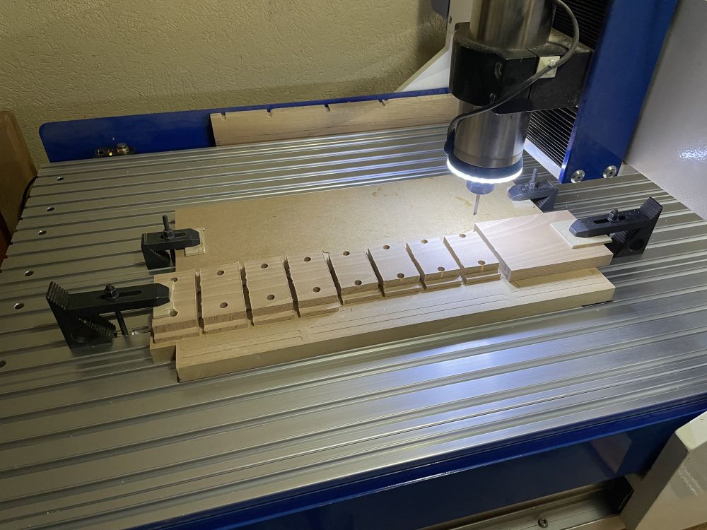 Le 8 novembre, fraisage des coulisses. Reste à séparer les pièces, finir au ponçage puis insérer les écrous.