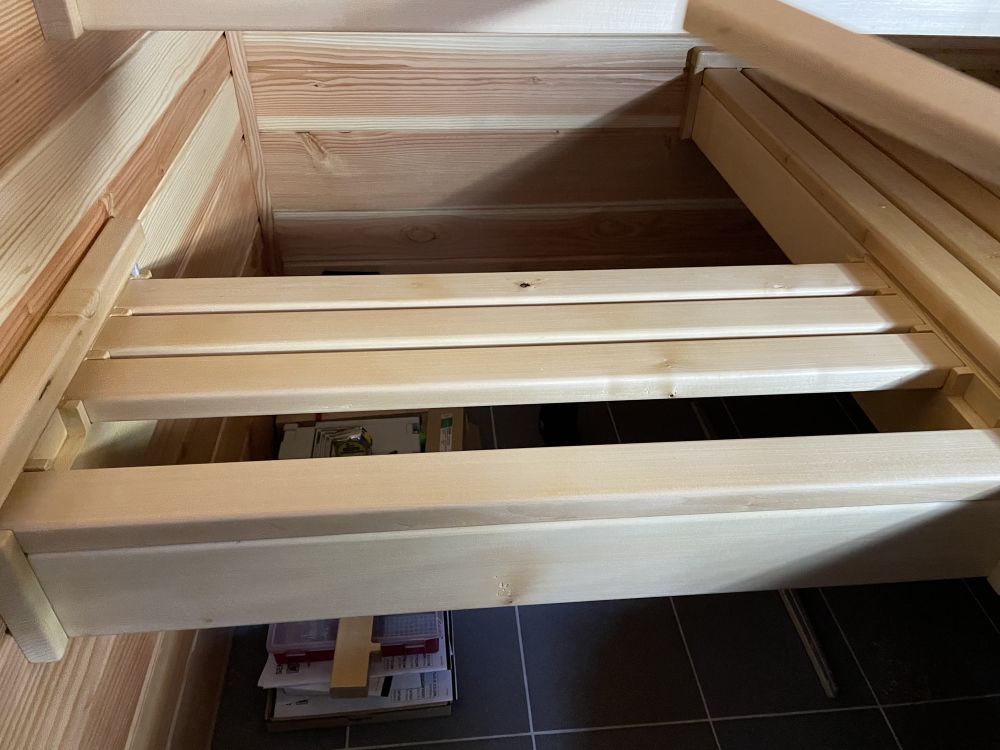 Destinée à être un siège, il n"y a que 5 lattes.