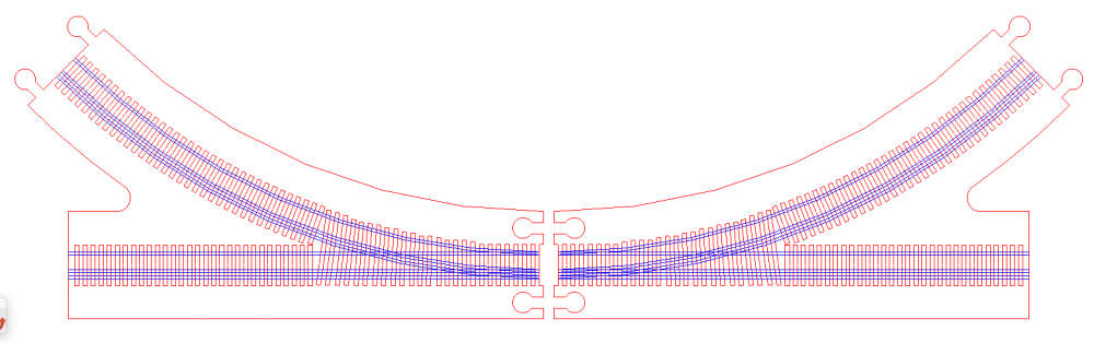 Pour améliorer le traversage au niveau des aiguilles, j'ai dessiné deux nouveaux gabarits pour la découpe laser.