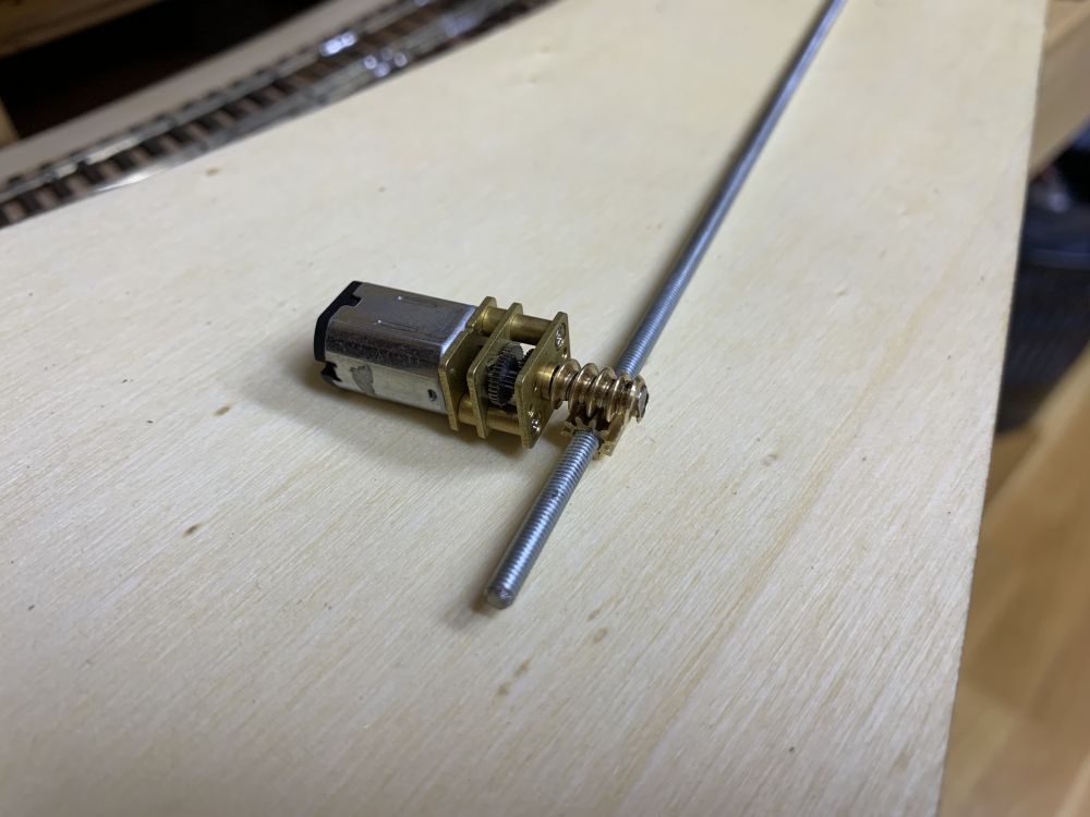 Après un bon mois de travaux divers, retour au petit train. Le premier bloc moteur pour l'aiguille est fonctionnel, mais ne me satisfait pas. S'il y a résistance au mouvement, le joint torique peu patiner et dans ce cas le fonctionnement est décalé. Une deuxième raison est la position par rapport à l'aiguille. le bloc moteur parallèle à la voie est probablement plus joli qu'à 90°.