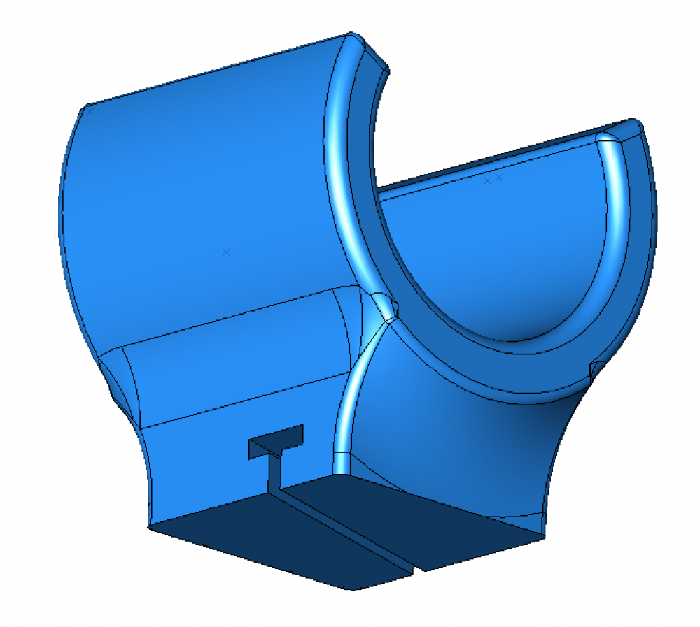 Le nouveau dessin pour le support de rail de caténaire est terminé. Quelques essais en 3D et je pense qu’on pourra reprendre l’équipement de l’hélicoïde. En fait, sur ce dessin la pièce est évidemment à l’envers parce que le rail de caténaire doit être en dessous. Pour celui qui connaît l’impression 3D, la paroi médiane doit soutenir le bloc avec la rainure pour le rail durant l’impression, sinon il y a léger affaissement.