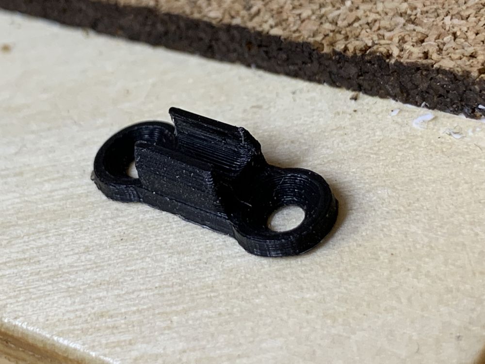 Le 17 janvier, la bride est fonctionnelle, mais me paraît fragile. Un nouveau dessin pour une version un peu plus forte de 8 x 20 x 6 mm.
