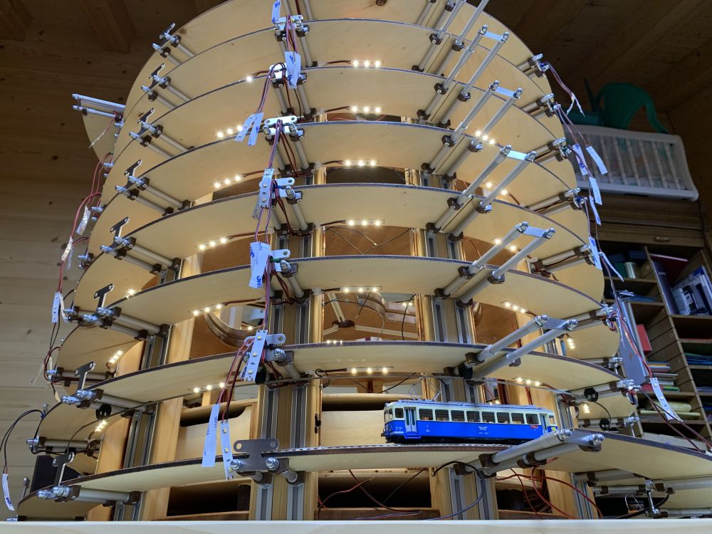 Le 30 janvier, le rail de caténaire grimpe régulièrement. Arrivé en haut, les caténaires vont avoir besoin de potences.