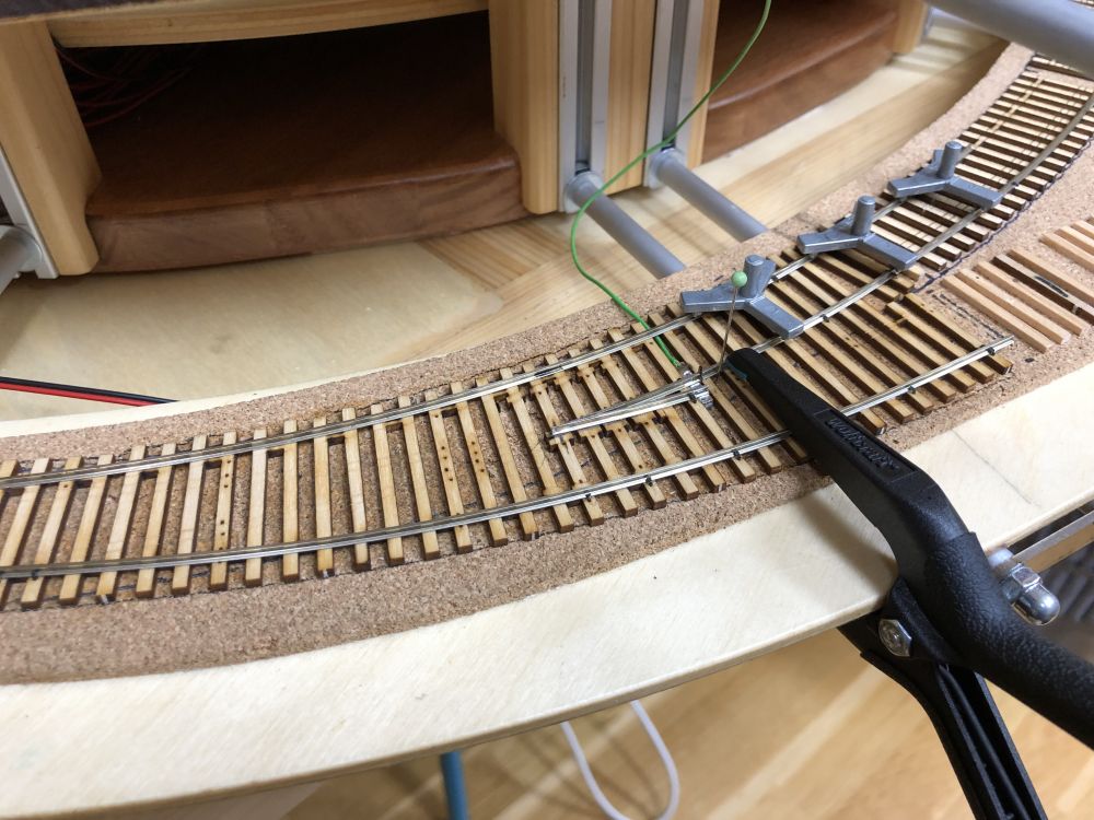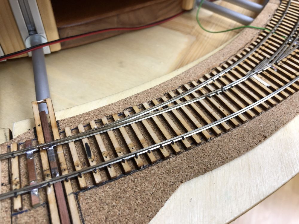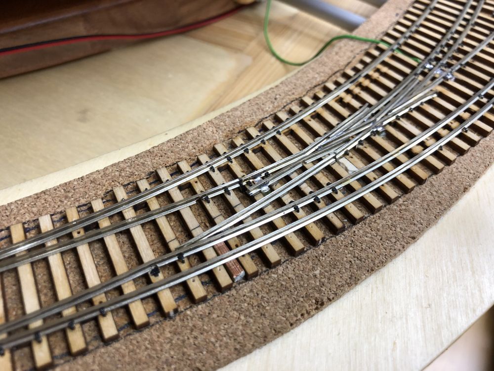 Prolongation d’un brin H0. Le fil vert sera la liaison électrique de la pointe de cœur.