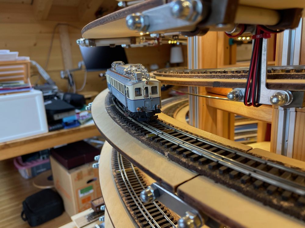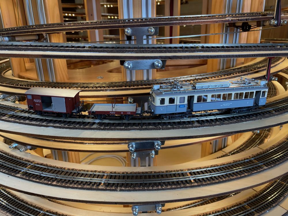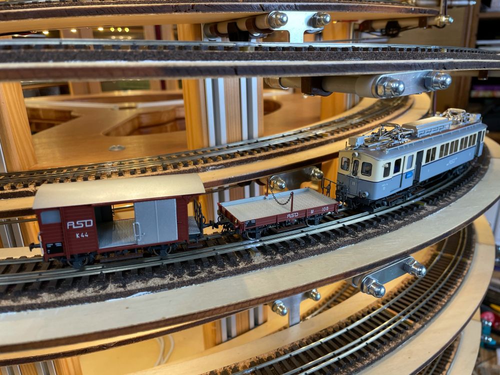 Côté petit train, il faudra que je termine le nettoyage des voies correctement parce qu’une nouvelle locomotive est arrivée. Une ASD ancienne génération ACFe 4/4 avec des petits wagons.