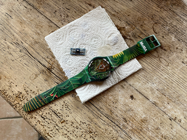 Pour alimenter le petit micro-contrôleur en 5v, il fallait aussi un convertisseur qui prend le 12v de la commande moteur. La plaquette mesure 11 mm x 25 mm et doit être placée entre la carte commande du moteur et le micro-contrôleur. Les 30 circuits sont arrivés.