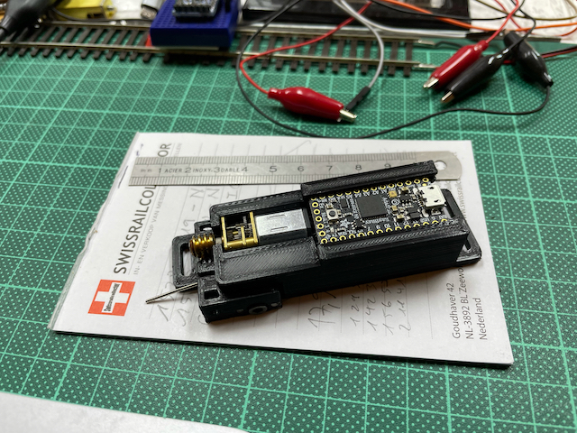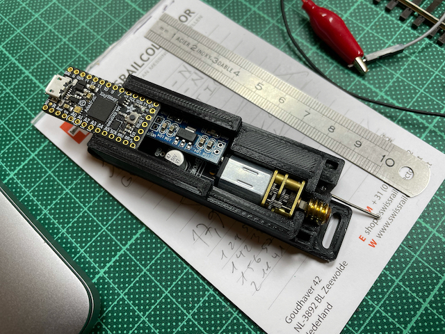 Depuis mi-février, peu de progrès pour le petit train. Les moteurs 12v 600 tr/mn sont arrivés. Quelques test de nettoyage avec le wagon de LuxModell et après un contact téléphonique avec eux, j'ai compris que la pression sur les rails du rouleau avec feutre doit être très légère, sinon il y a échauffement du relai de commande et la machine s'arrête. Maintenant, deux passages complets sur l'hélicoïde soit environ 2 x 41m linéaires ont été parcourus par la Be 4/6 poussant le wagon de nettoyage.